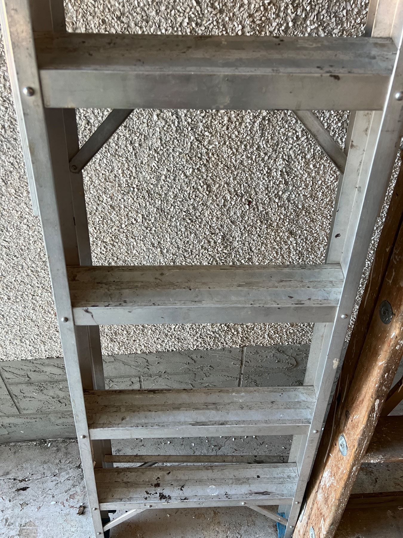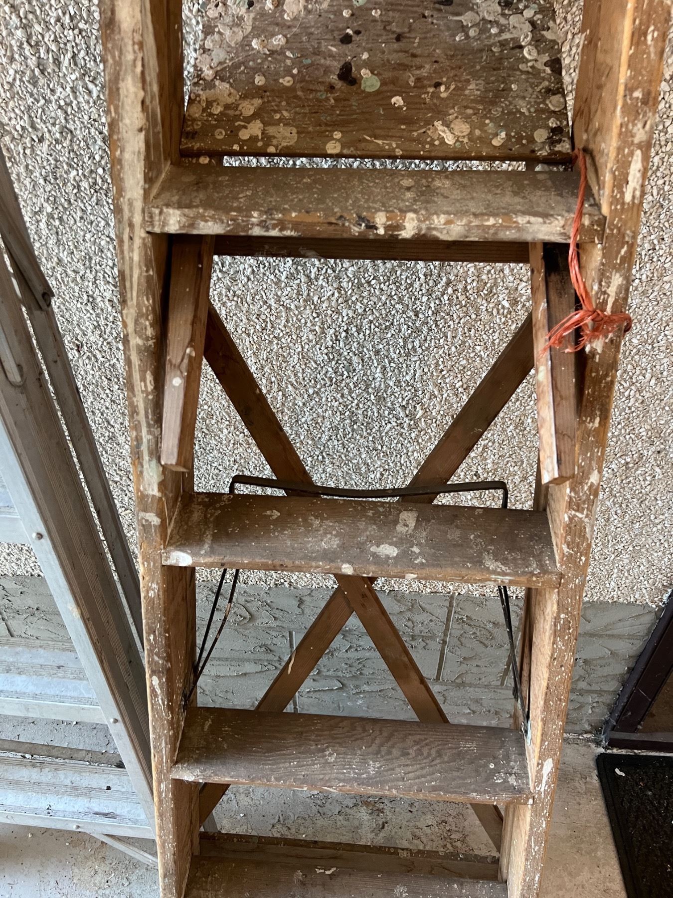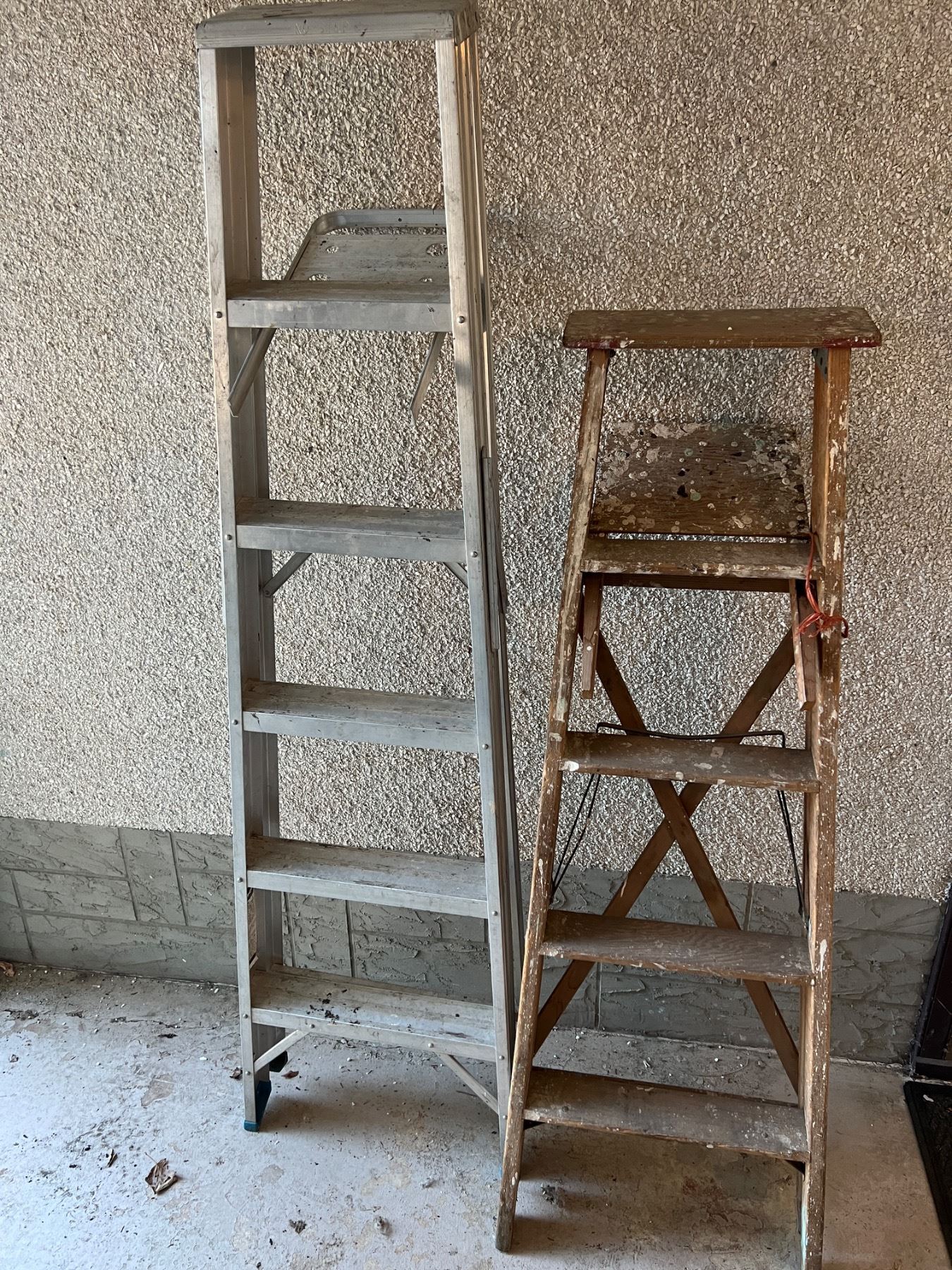 Both have paint stains and wear. Taller ladder is 72" tall.
