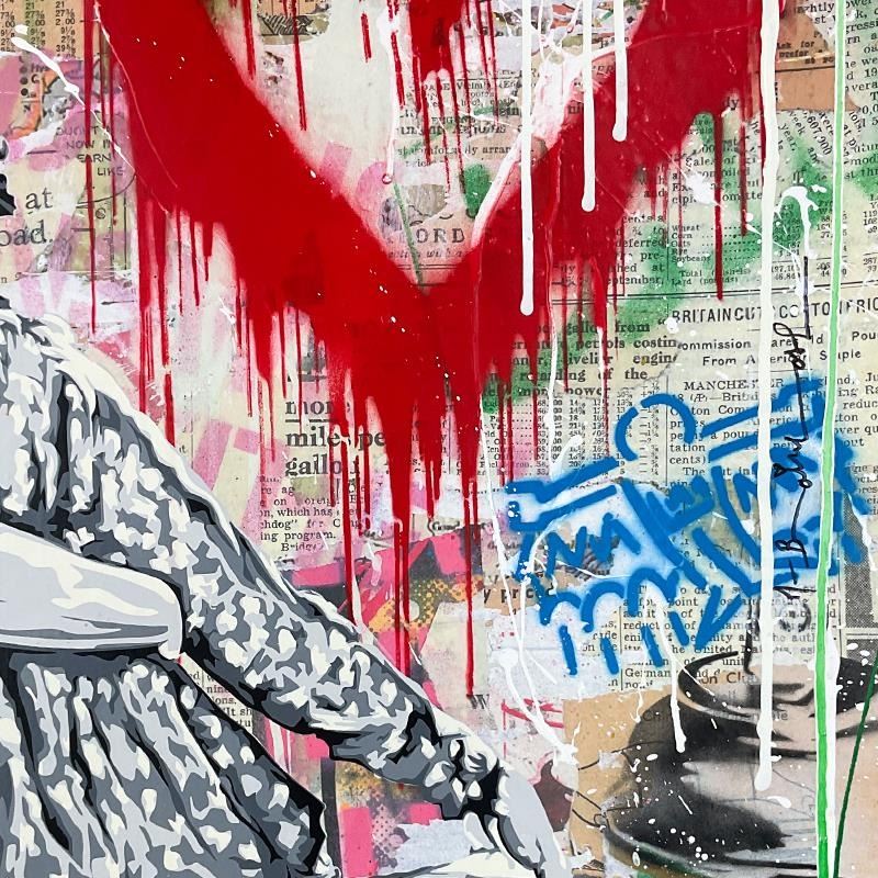 "Work Well Together" is a mixed media original on deckle edge paper by Mr. Brainwash, hand signed and bearing the thumbprint of the artist inverso. This piece comes custom framed. Includes Certificate of Authenticity. Measures approx. 40" x 40" (frame), 3