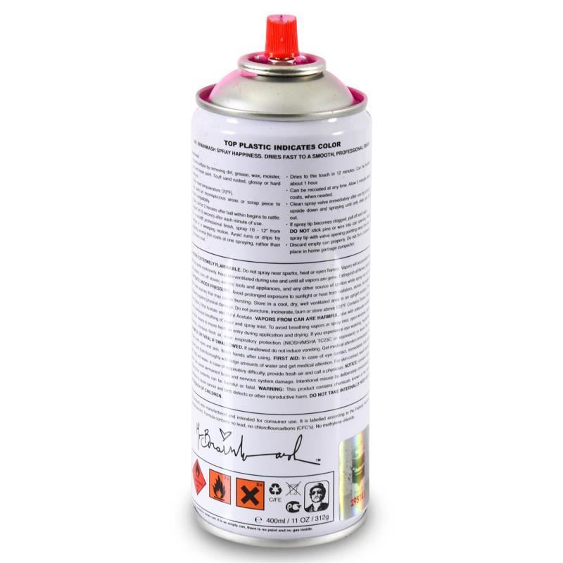 "Work Well Together (Pink)" is a numbered limited edition hand painted spray can by Mr Brainwash from the 2020 Classic Spray Can Collection. Measures approximately 2.5" x 7.5".