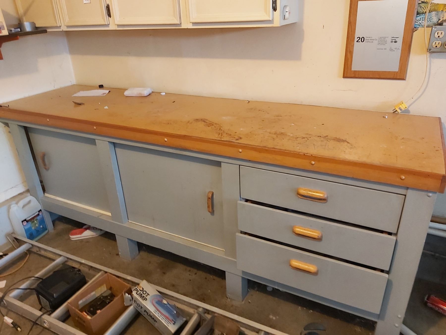 Workbench 93x25x35, bring help to load, in garage. Pickup 11am