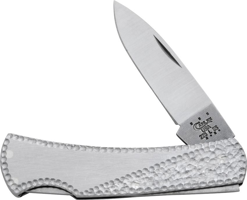 Closed: 3"; Blade: 2.125" l Stainless l Standard Edge: "as ground" drop point blade. Hand-worked stainless steel handles. Velvet storage box.