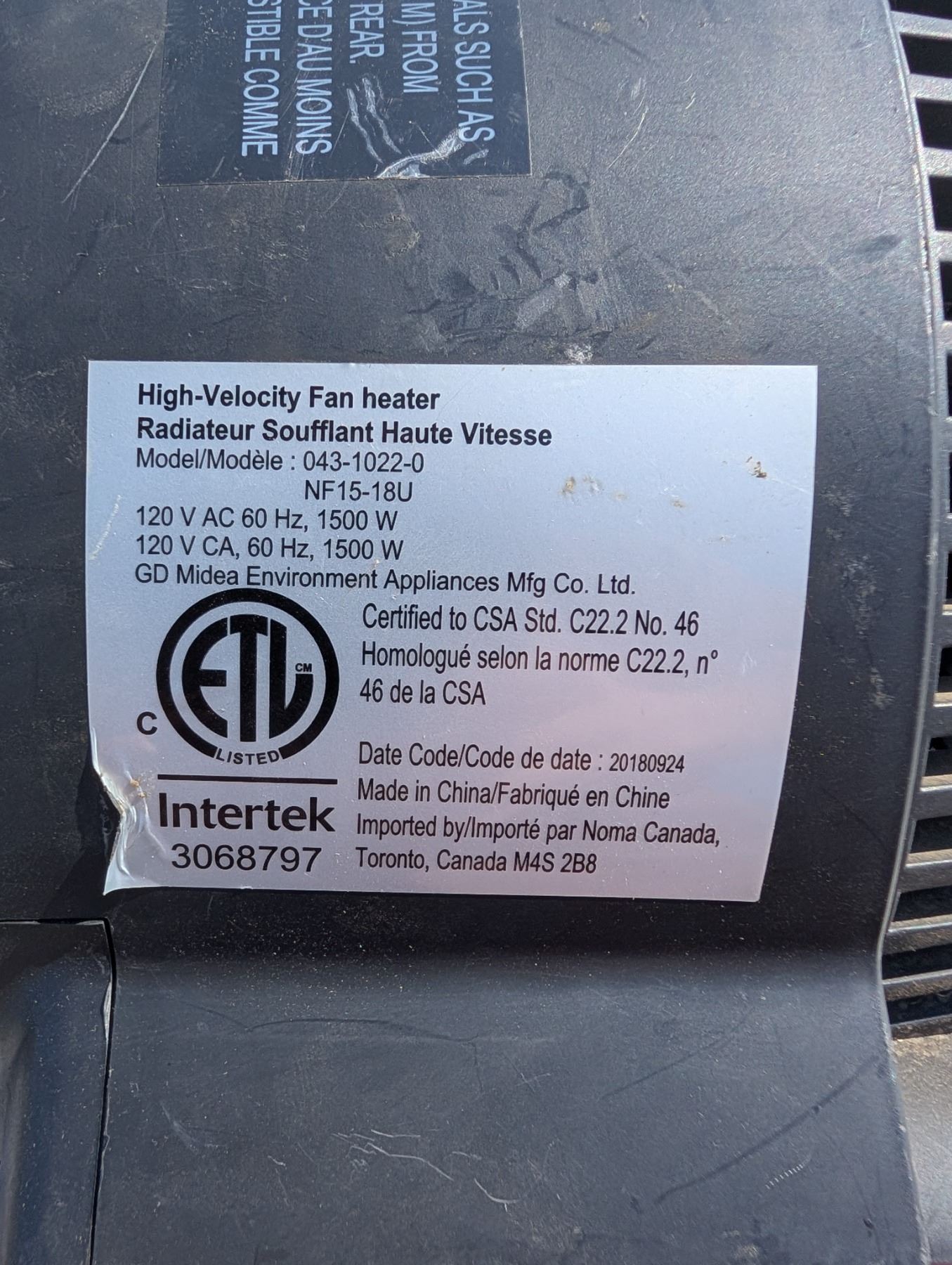 Working NOMA Pressure Fan (high Velocity Fan Heater)