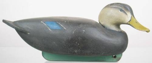 Working turned head, black duck decoy by the Ward Bros. Crisfield, MD. Made of balsa wood with XOP and minimal wear. Original keel. Painted eyes. (decoy)