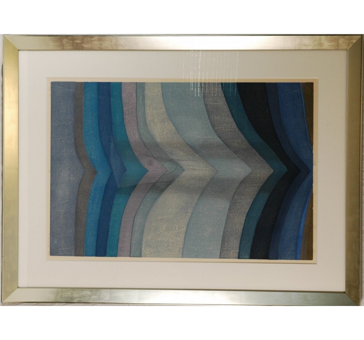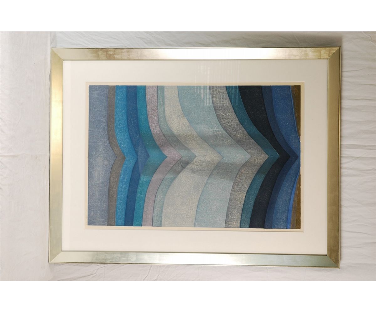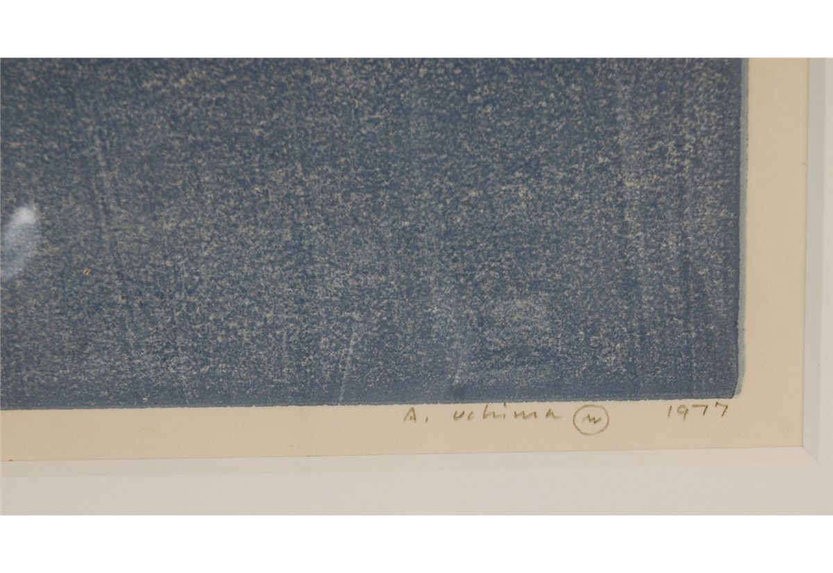 Works from the Leiman Brothers Collection Part II. Ansei Uchima "Untitled" woodcut. Framed in modern silver wooden frame. 41" x 30.5".