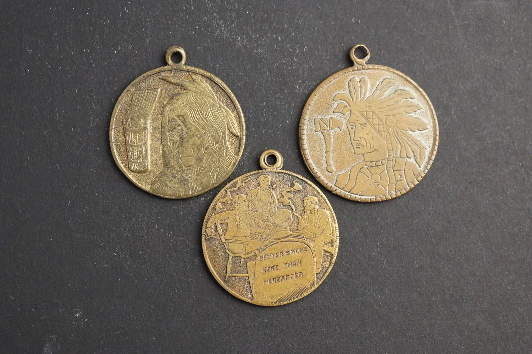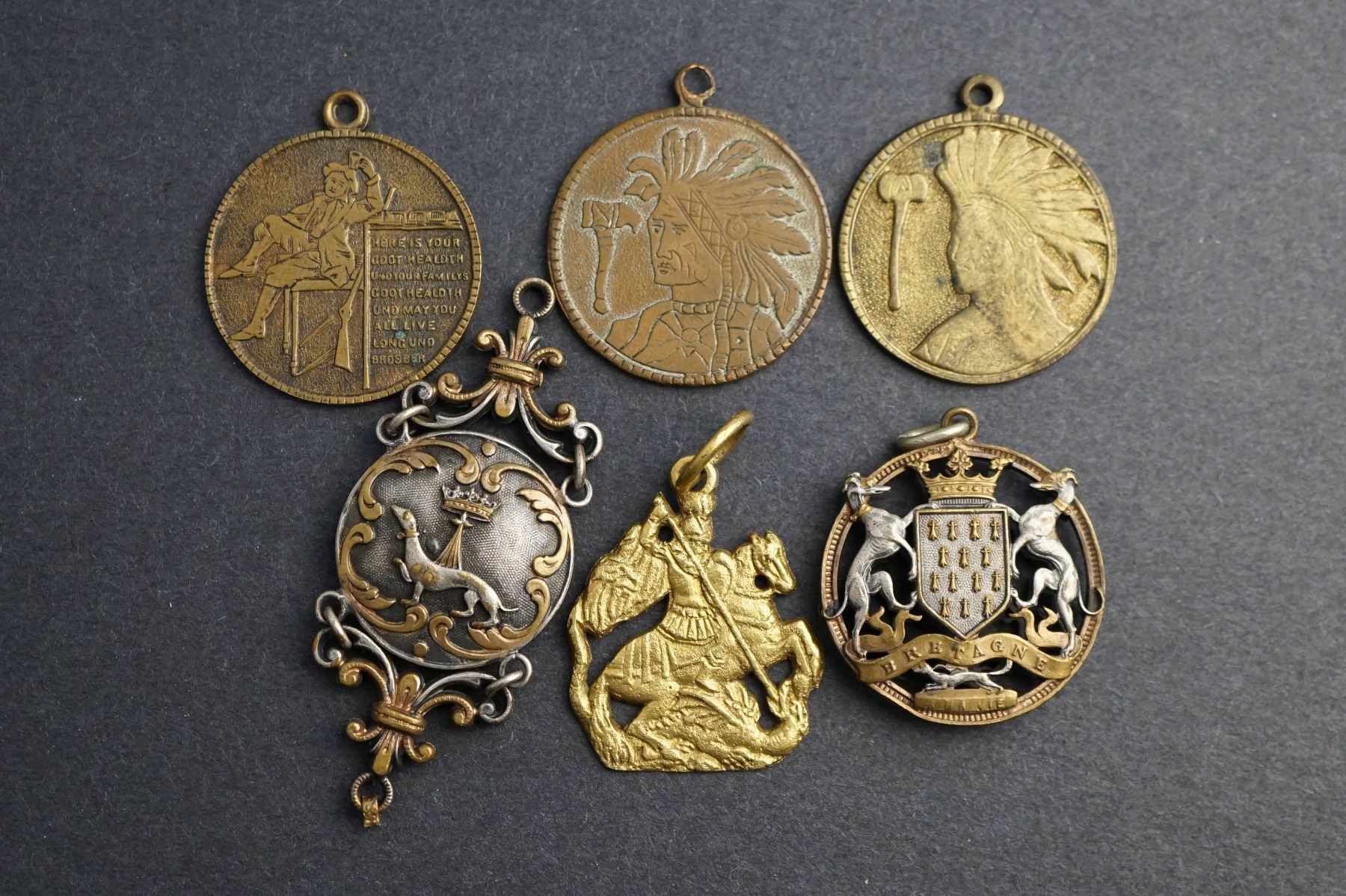 6 pcs. Bretagne, France, George & Dragon, England, Marmot & Crown, unknown plus 2 Indian chiefs and one smoker's credo. Must view.