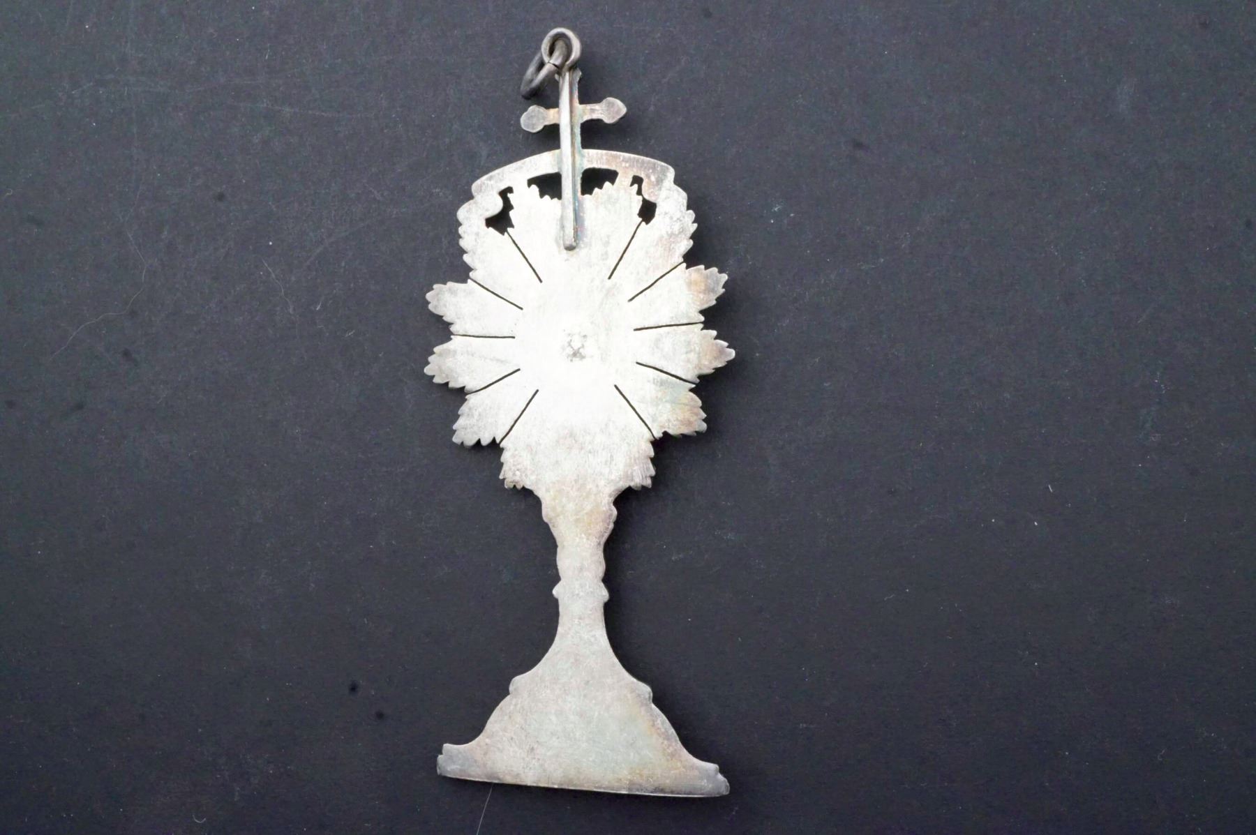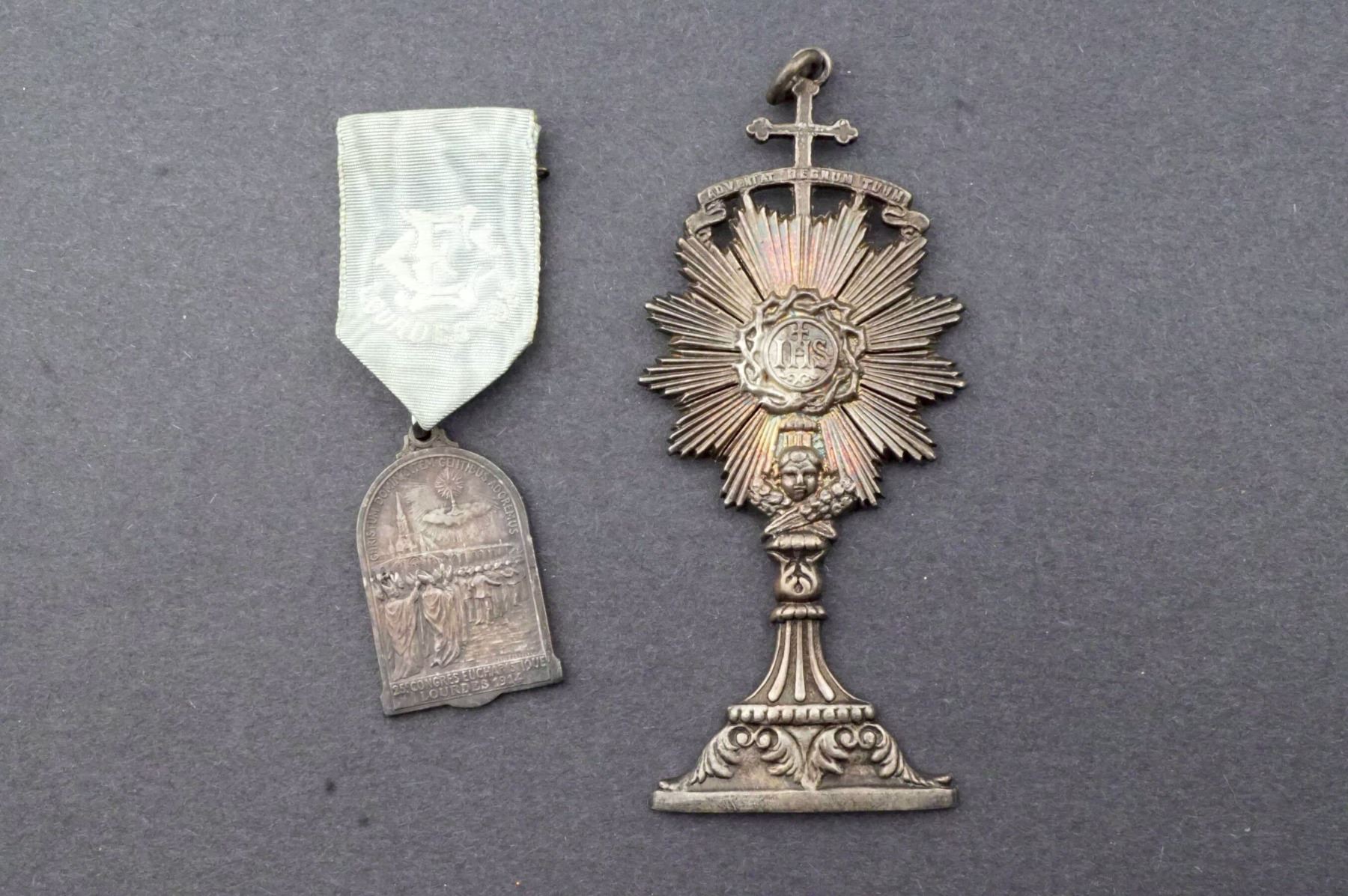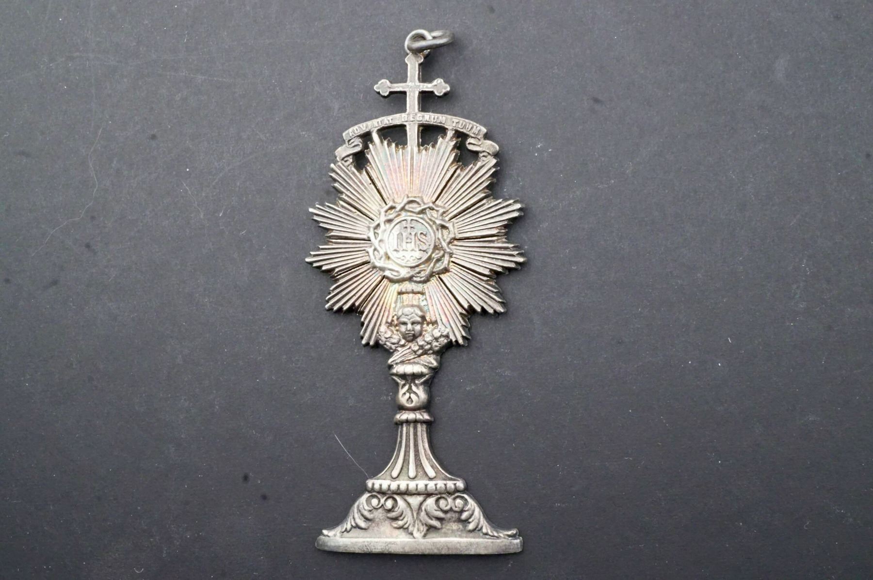 2 pcs. 1-1914 Lourdes by Poncet. Lyon, France w/hanger 1-108 mm. Monstrance w/ loop37.0 grams Very Impressive!