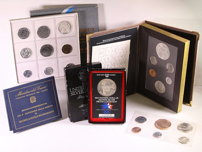 United States of America, proof sets, 1983 including the silver Dollar (26.730g, KM.209); plus single silver Dollar (26.730g, KM.209 (2)) and uncirculated set, 1986; together with San Mario uncirculated set, 1977 and Italy silver Five Hundred Lire, 1975