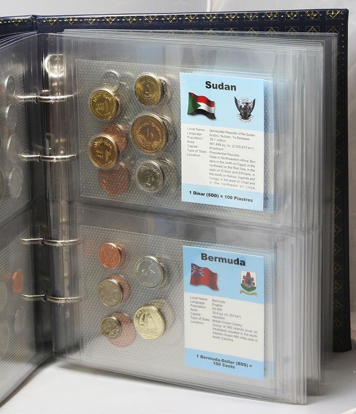 World Money Coin sets, 35 countries in total, all housed in folder for issue, Gem Uncirculated