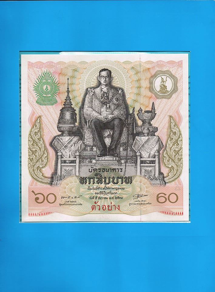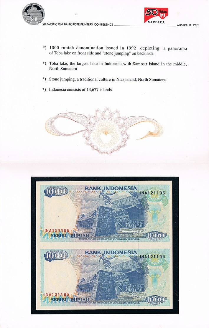 Thailand, Rama IX, Sixty Baht, Specimen, 1987; together with Indonesia, Thousand Rupiah, vertical pair, 1992; Romania, Two Thousand Lei, 1999 and Ten Thousand Lei, 2000; plus United States of America, One Silver Dollar, printers intaglio and Two Dollar, Washington, block of four stamps, 1994 folder (P.93s, P.126, P.111b, 112a) (5 items), all in folders of issue, except the forth item which is loose, Uncirculated