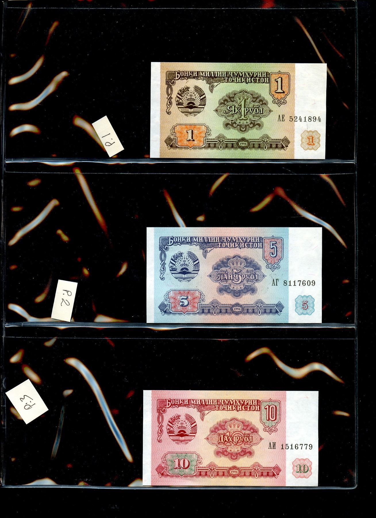 World Banknote Lot; Lot of approx 12 notes from Tadjikistan. See images.