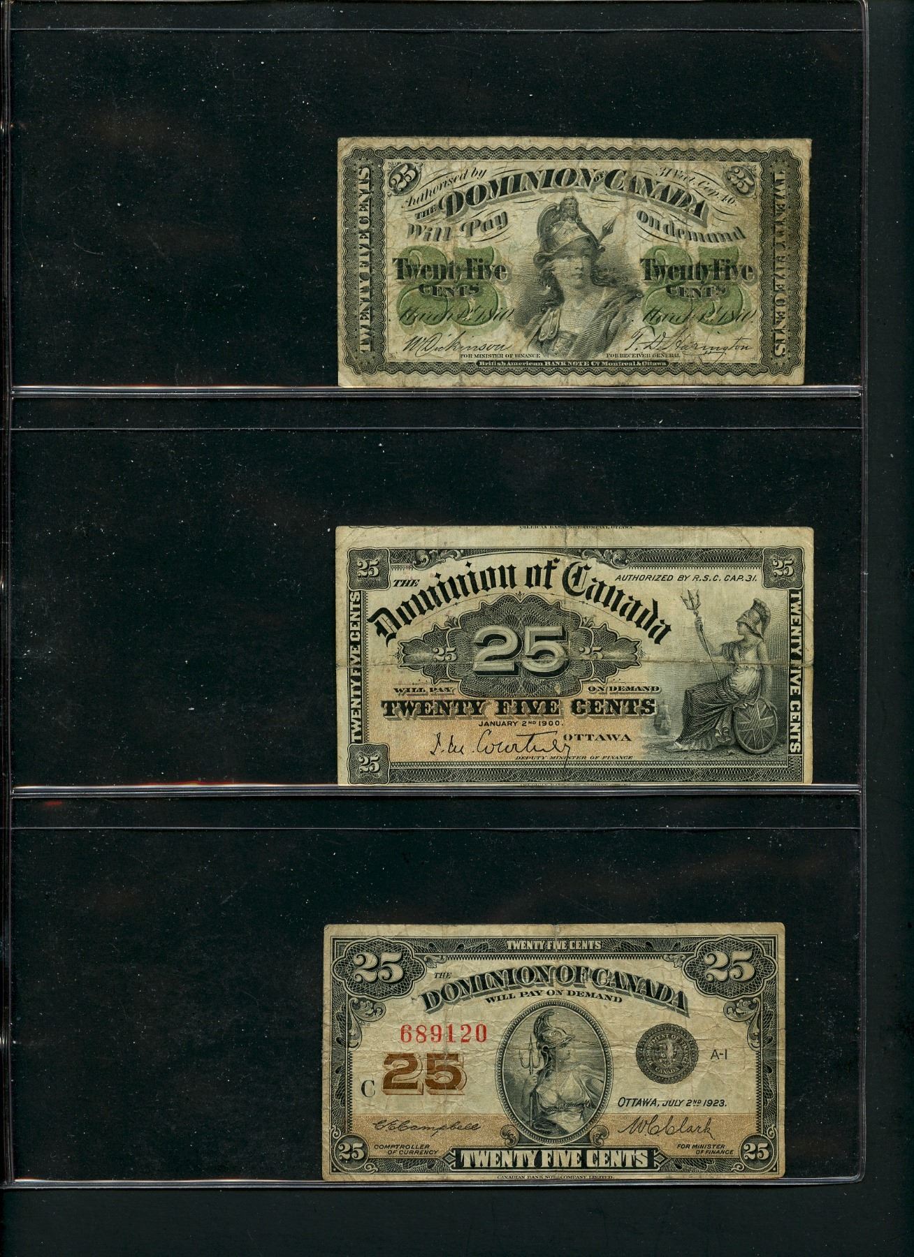 World Banknote Lot; Lot of approx 21 notes from Canada. Includes Dominion Shinplasters, Chartered