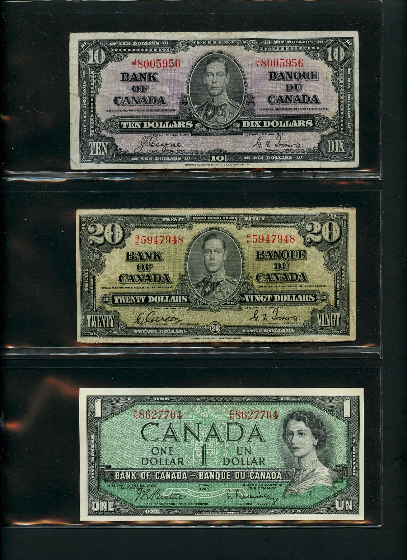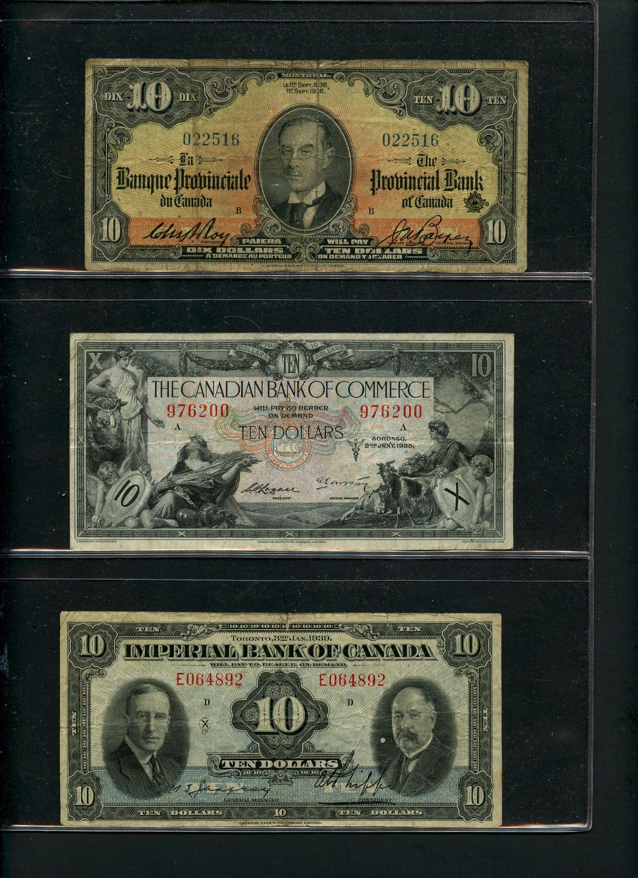 World Banknote Lot; Lot of approx 21 notes from Canada. Includes Dominion Shinplasters, Chartered notes and Bank of Canada 1935+ issues. See images.