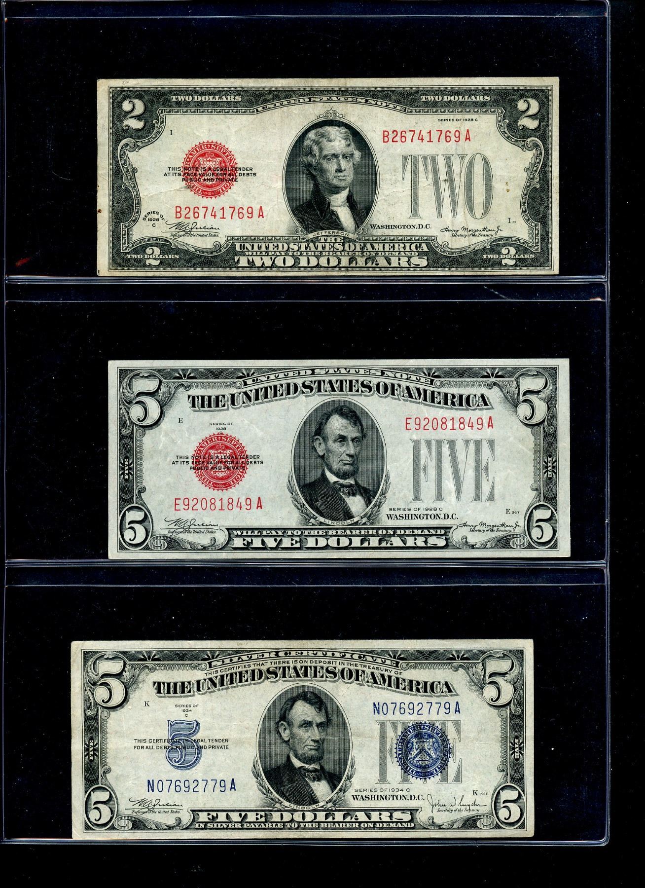 World Banknote Lot; Lot of approx 38 notes from the USA. Includes Confederate, Federal Reserve, Si