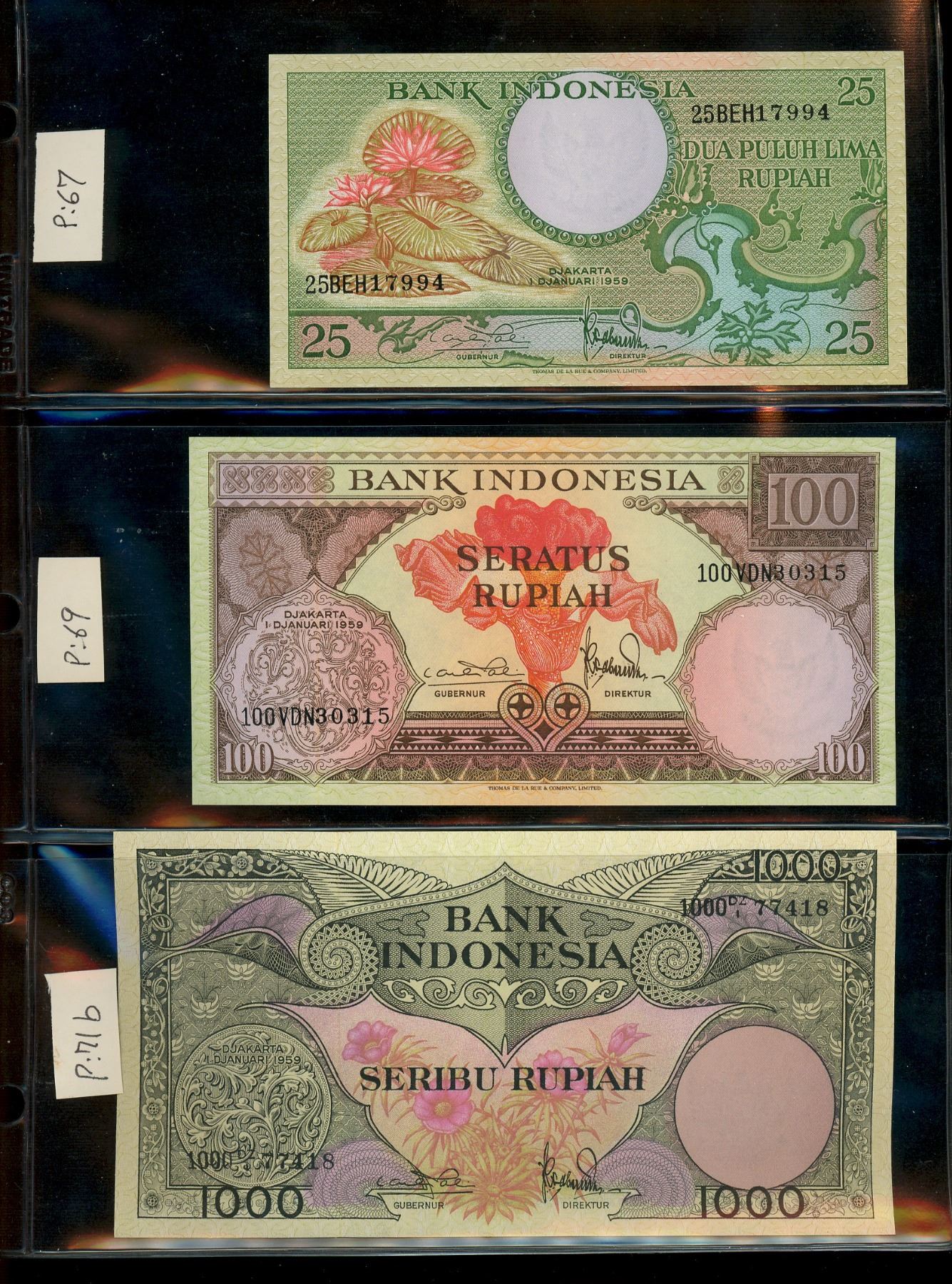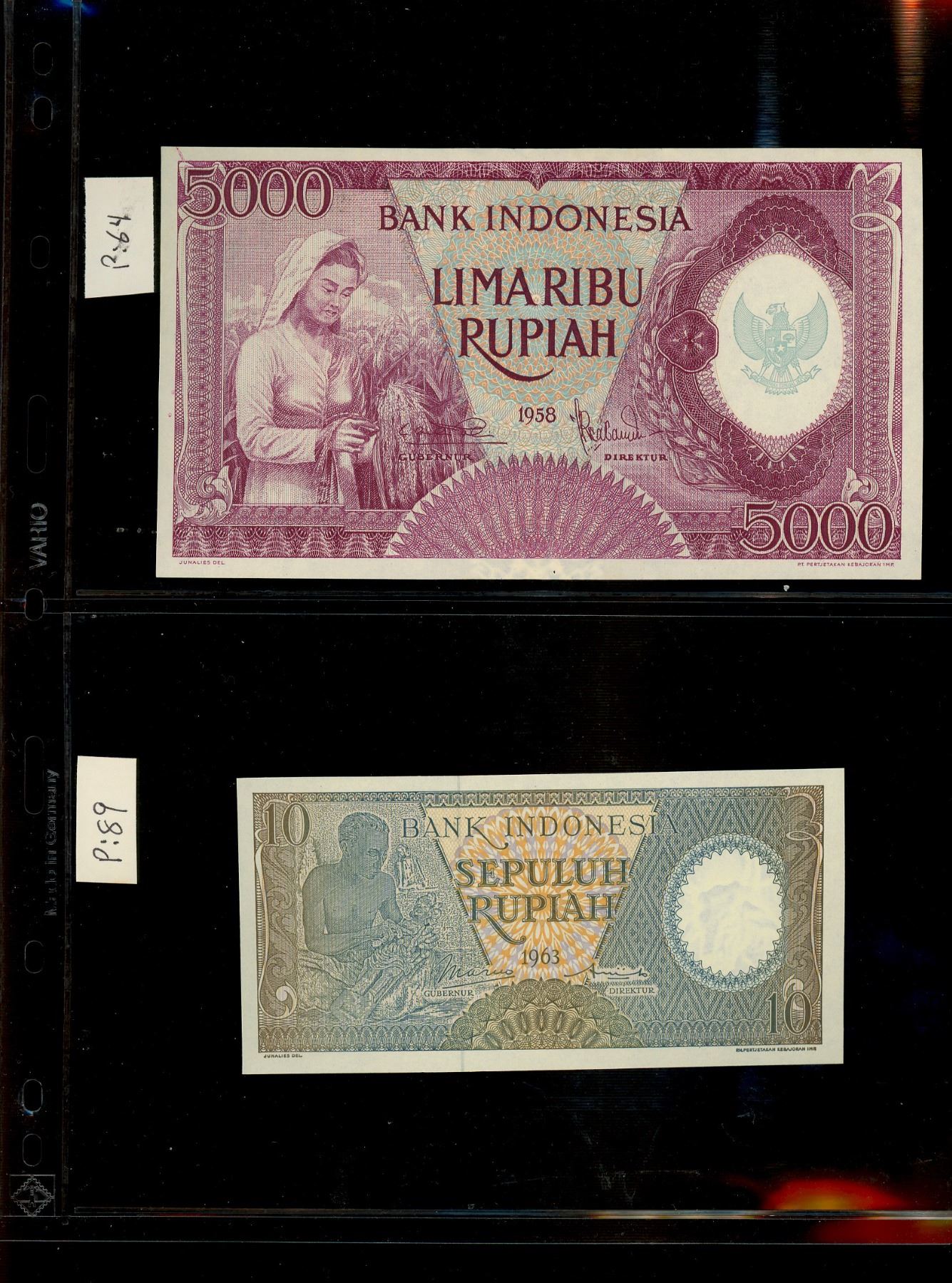 World Banknote Lot; Lot of approx 64 notes from Netherlands & Indonesia. See images.