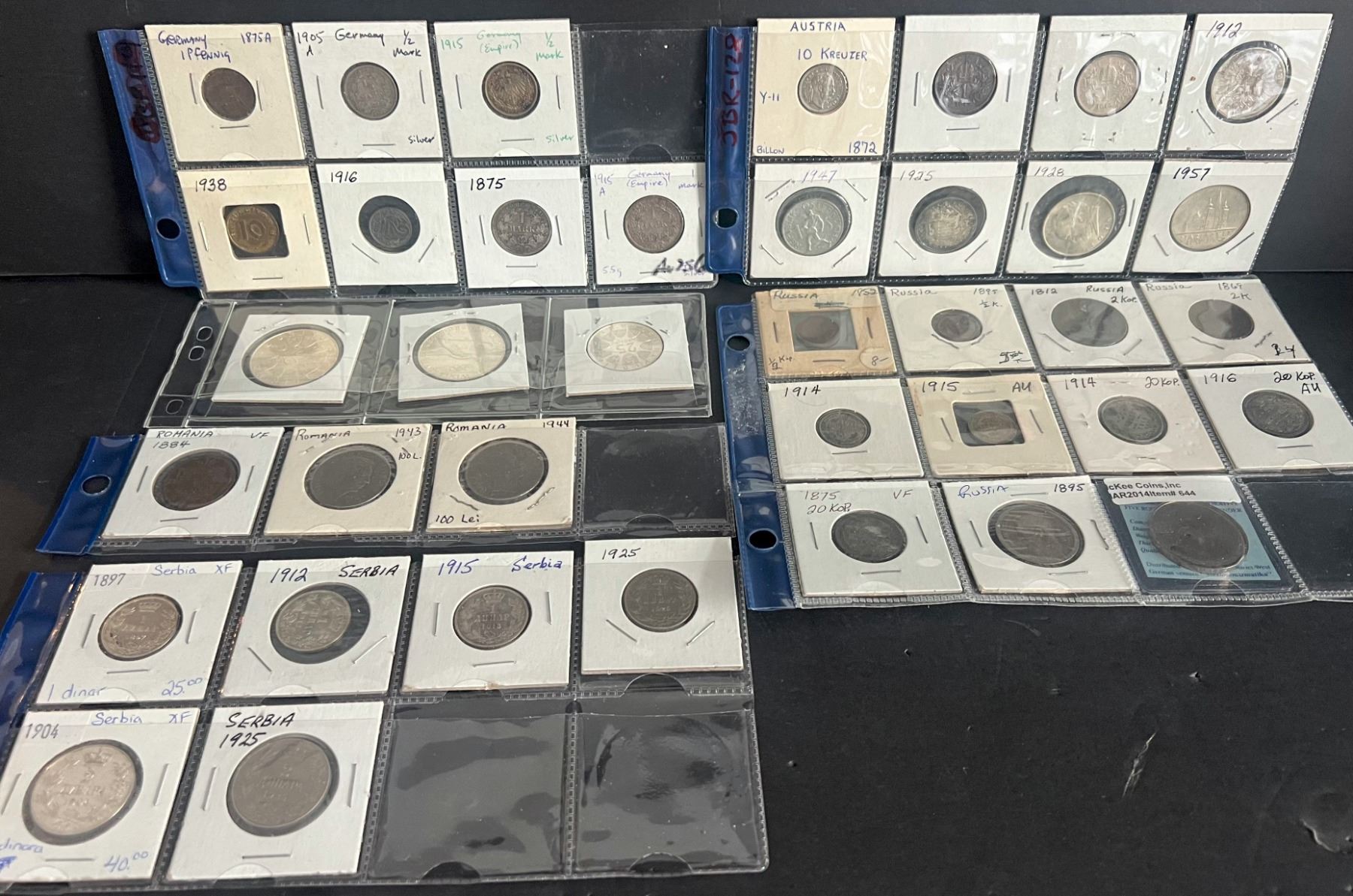 World Coin Lot; includes 38 coins from various countries. Grades vary. A nice lot.