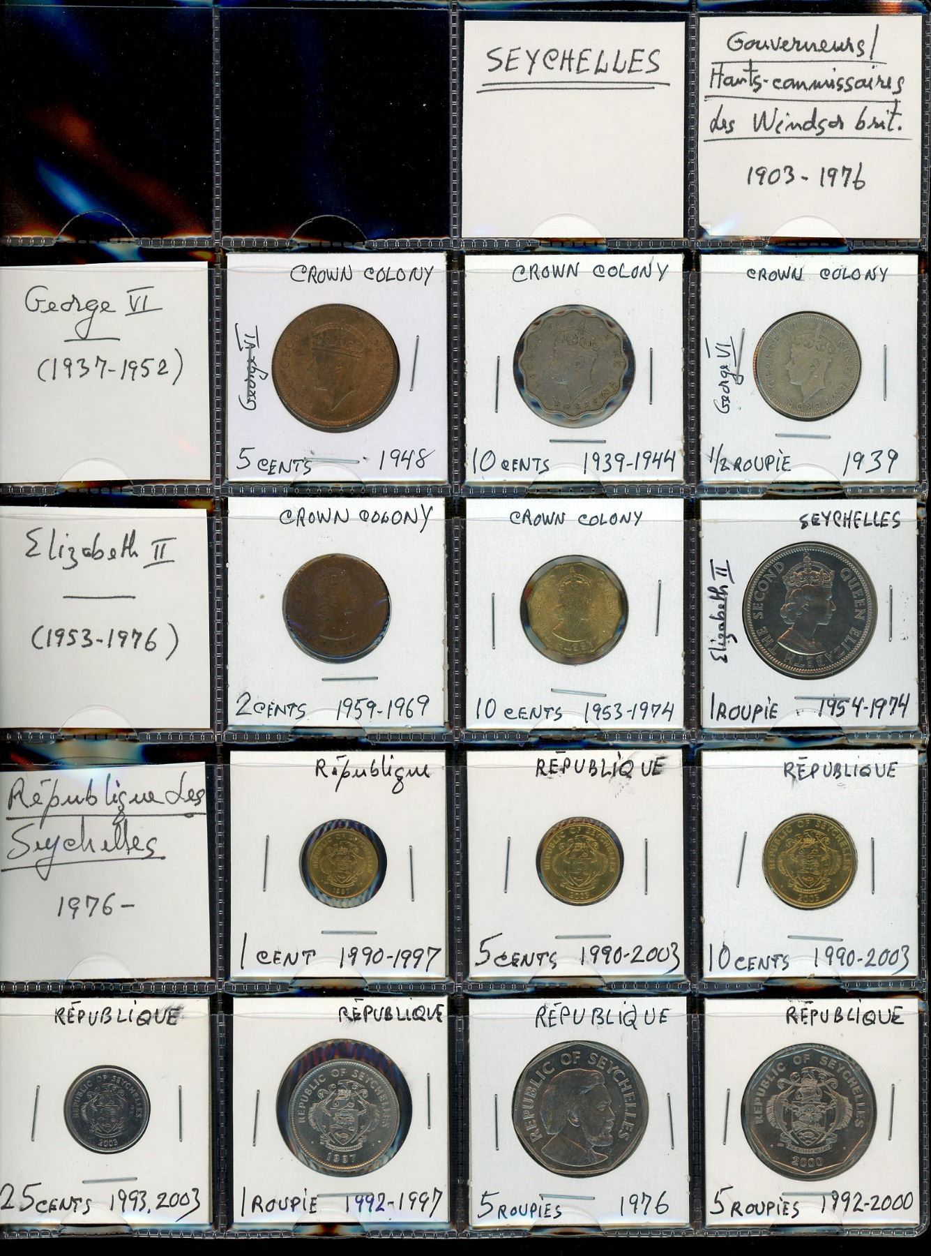 World Coinage Lot; Lot of approx 13 various issues from Seychelles 1939-2003
