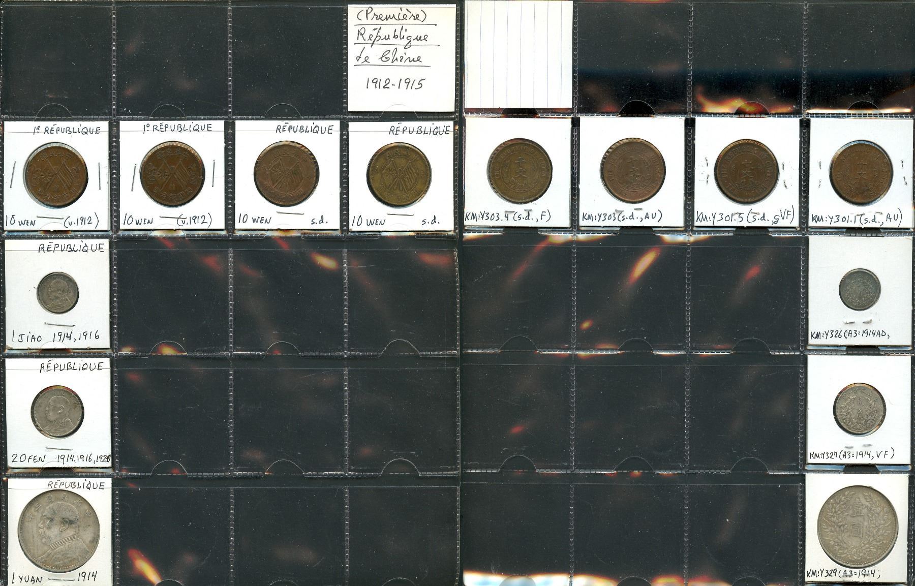World Coinage Lot; Lot of approx 34 various issues from China: 1 ière république 1912-1915