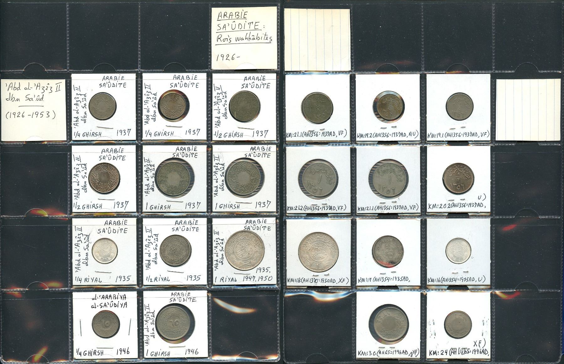 World Coinage Lot; Lot of approx 49 various issues from Arab States. Arabie sept. -Hedjaz -Nedjd 5 av.JC-2016