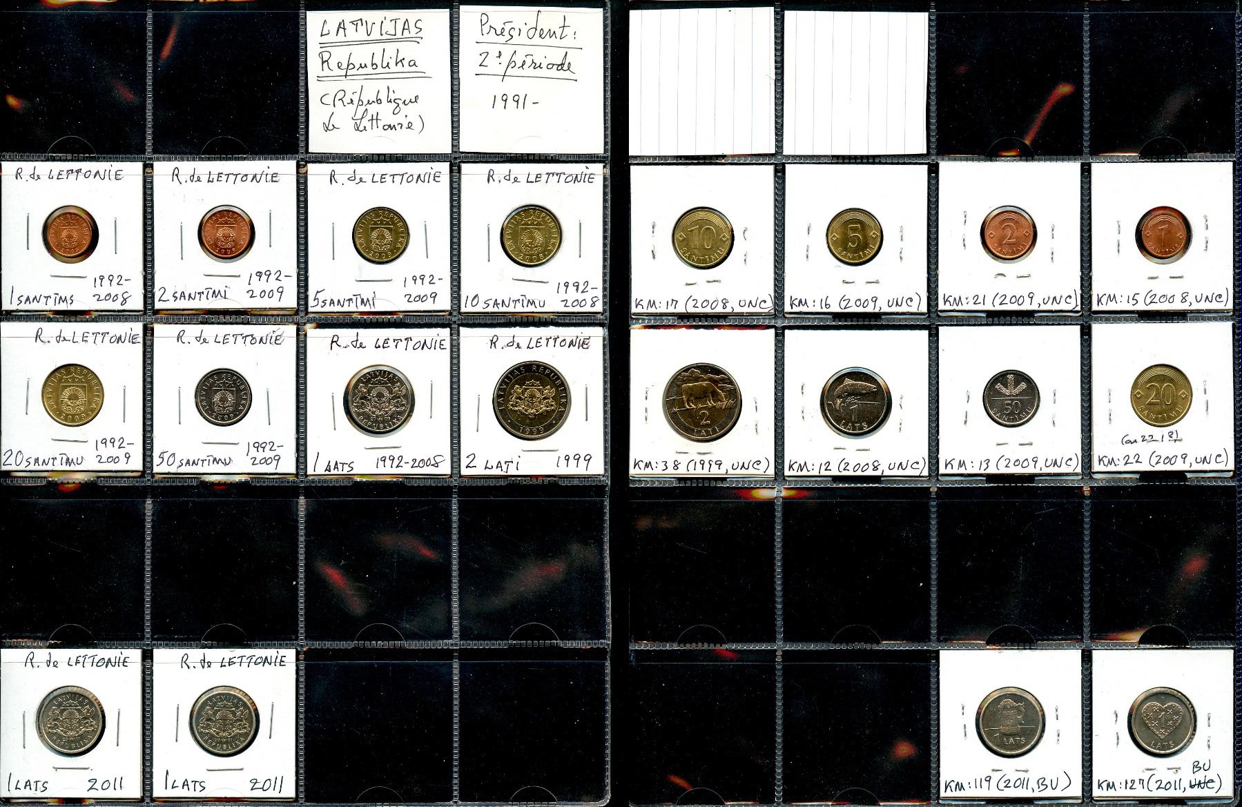 World Coinage Lot; Lot of approx 60 various issues from Latvia. Livonie-Lettonie 1518-2018