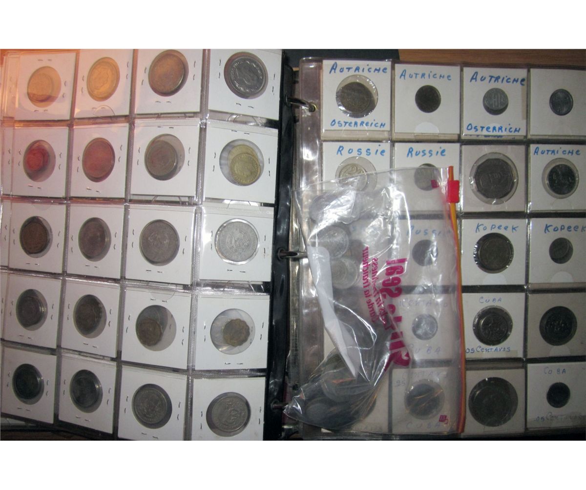 World Coins Binder; Lot of 1 old binder including coins from Austria to Poland, some Canadian and US. 425+ coins 1900 to date all in 2x2s + a ziplock.