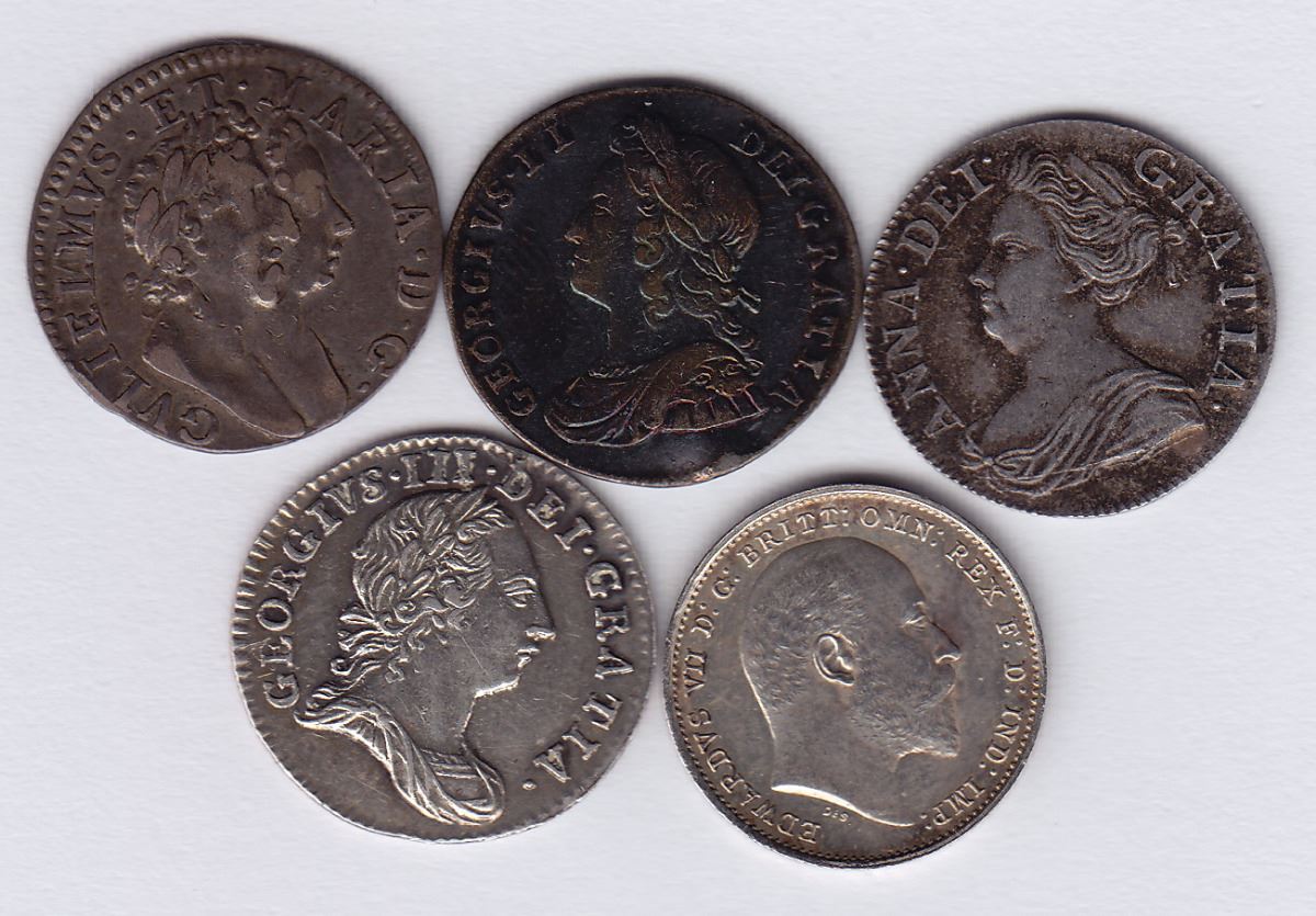 Includes: 1689 KM#470.1, VF; 1713 KM#514, XF; 1729 KM#569, F-VF; 1763 KM#591, VF-XF; 1905 KM#797.2, AU. 5 Pcs.
