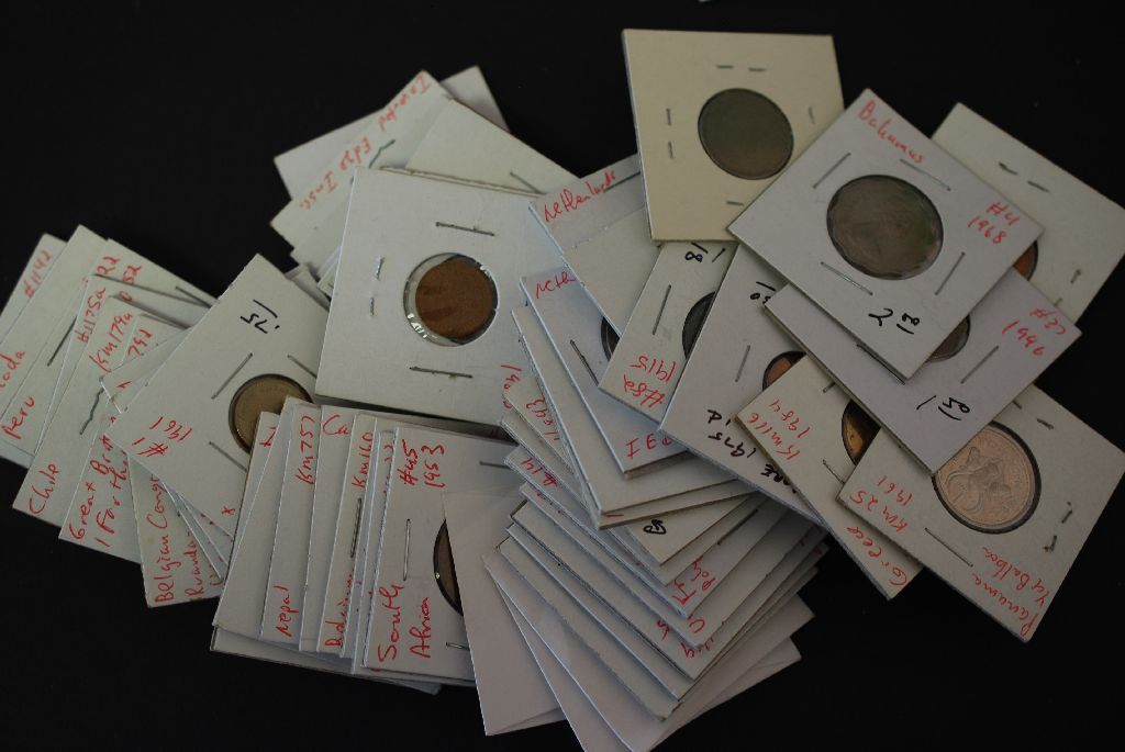 World Coins & Tokens; Various Dates & Denominations; Worked in 2x2 Squares; Lot of 50