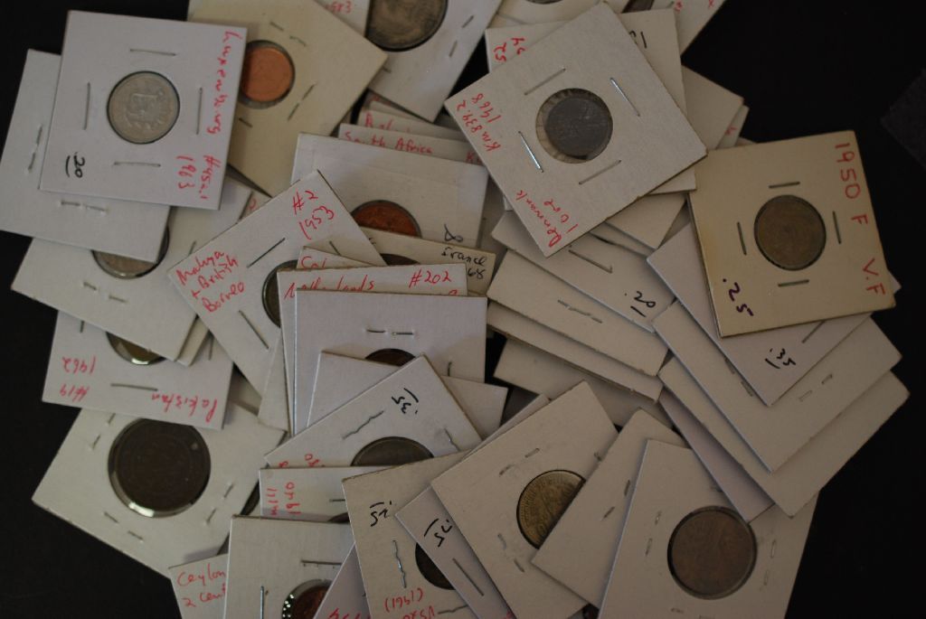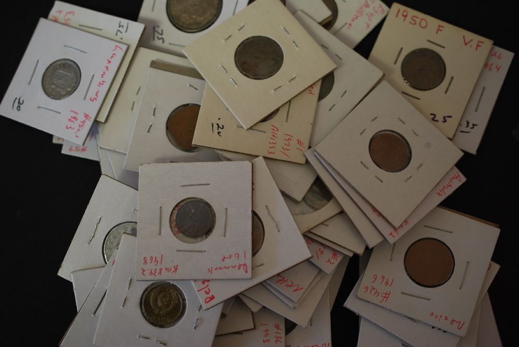 World Coins; Various Dates & Denominations; Worked in 2x2s; Lot of 50