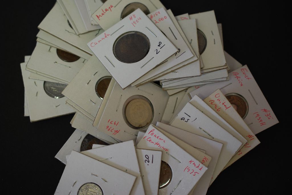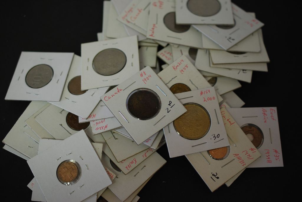 World Coins; Various Dates & Denominations; Worked in 2x2s; Lot of 50