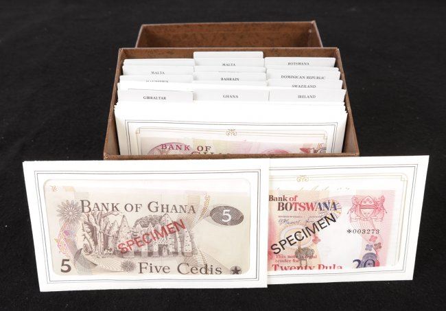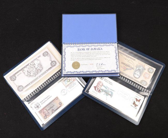 Selection of specimen notes produced and sold for collectors. Includes Franklin Mint set in brown box, three Jamaican sets, and a Polish set. Most as issued.
