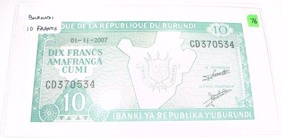 World Currency *BURUNDI* 10 Francs *RARE UNC HIGH GRADE - NICE BILL*!! ***Coin & Currency Grades, Conditions and Values are not Northern Colorado Estate Liquidators Responsibilty. Grades, Condition and Values are determined by Consigner(s) & Buyers ONLY***