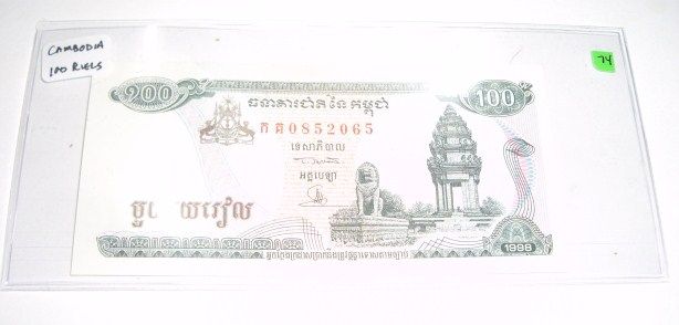 World Currency *CAMBODIA* 100 Riels *RARE UNC HIGH GRADE - NICE BILL*!! ***Coin & Currency Grades, Conditions and Values are not Northern Colorado Estate Liquidators Responsibilty. Grades, Condition and Values are determined by Consigner(s) & Buyers ONLY***