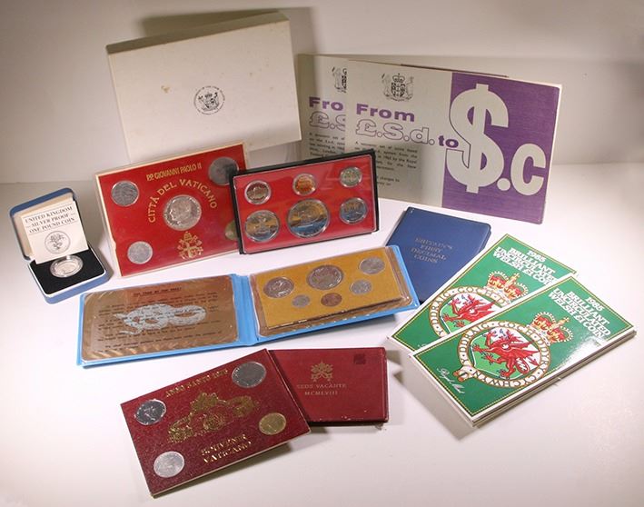 Cook Island proof set, 1975; together with Great Britain uncirculated decimal set, 1971, uncirculated One Pound, 1985 (2), sterling silver proof One Pound, 1985 (KM. 941a, ASW 0.2825); plus New Zealand uncirculated set, 1965 (2); plus Singapore uncirculated set, 1977; United States of America, proof set, 1976; Vatican uncirculated set, 1975, 1983 and Sede Vacante, silver Five Hundred Lire, 1958 (KM.57, ASW 0.2953) (lot)
