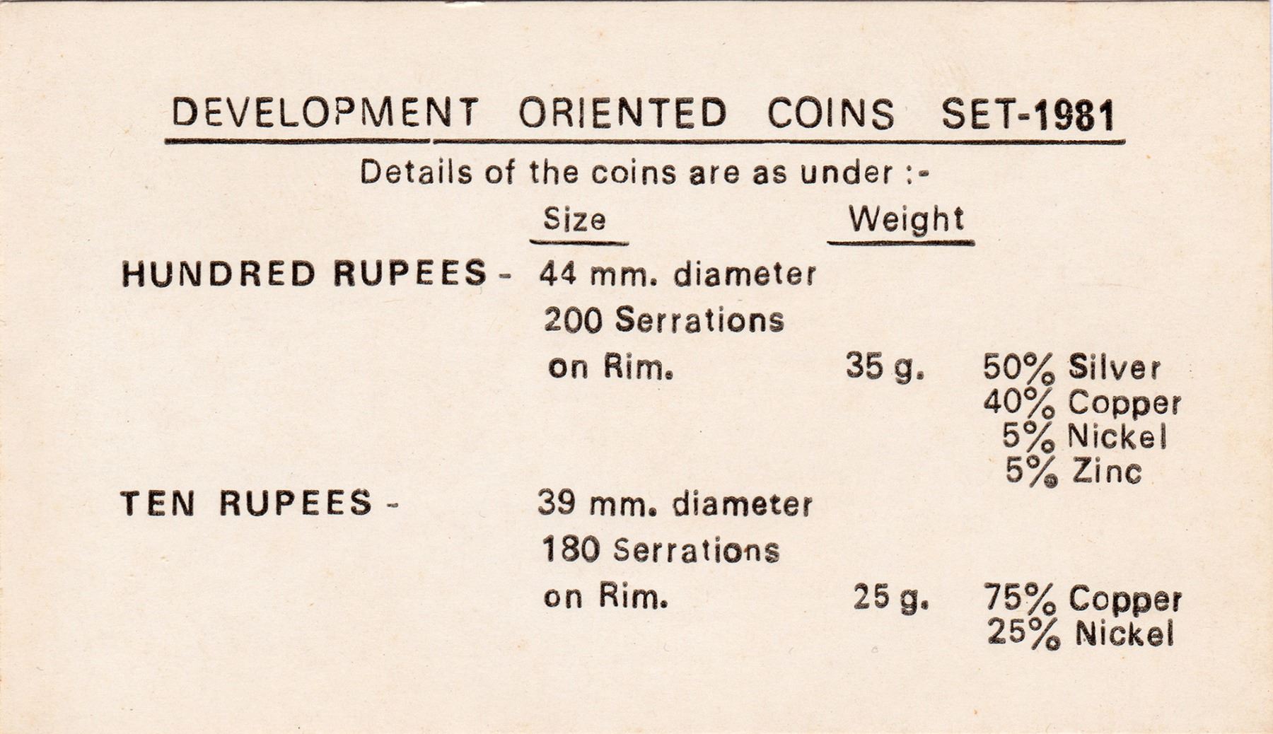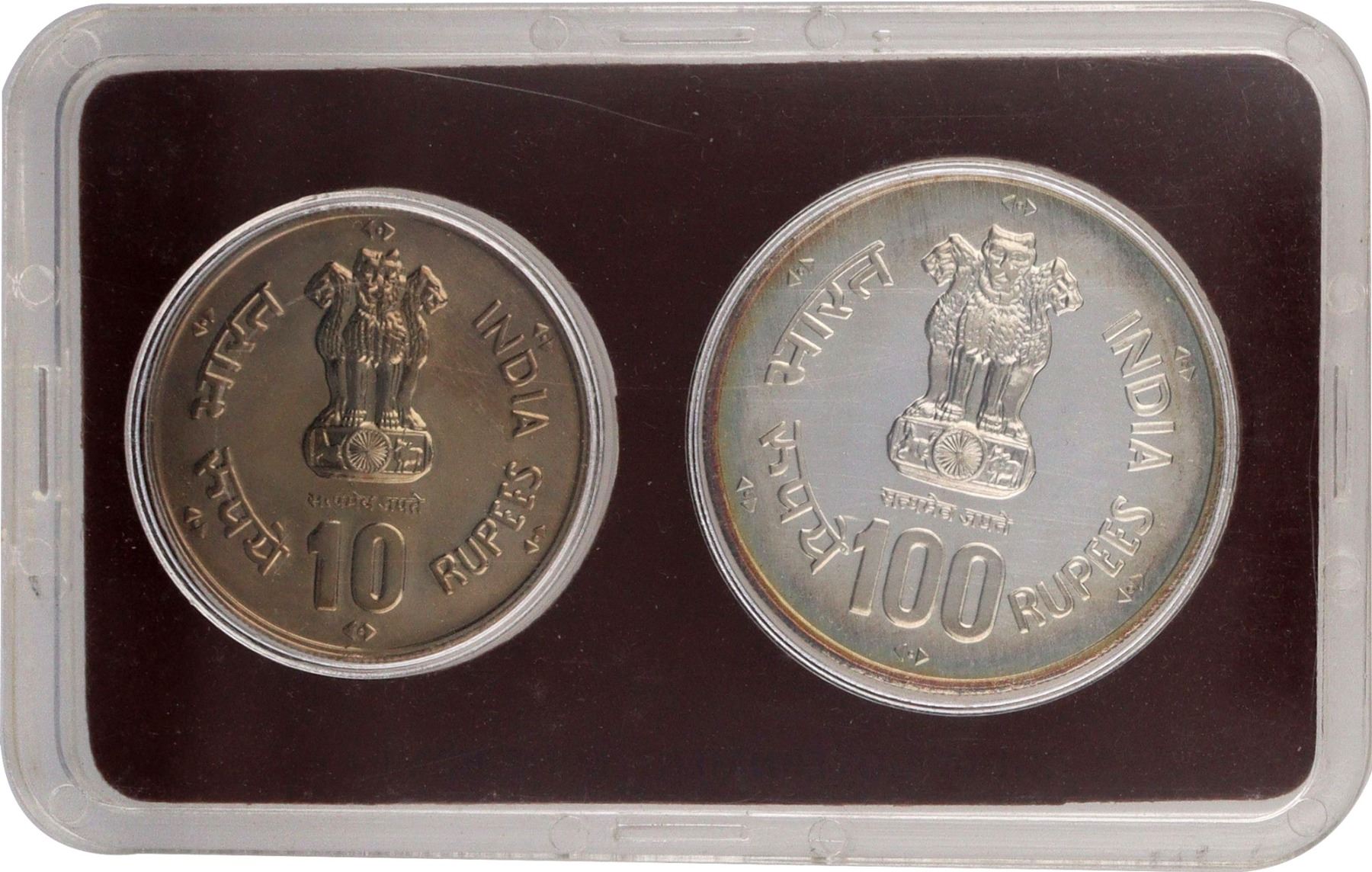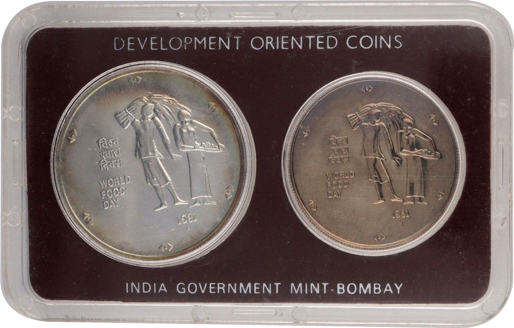 Republic India, 1981, UNC Set, World Food Day, Set of 2 Coins, Silver 100 Rupees & Copper-Nickel 10 Rupees, Bombay Mint, (KM # MS 24/RB # 86), intact in an acrylic case with outer cover and certificate, outer cover slightly torned, UNC, Scarce.