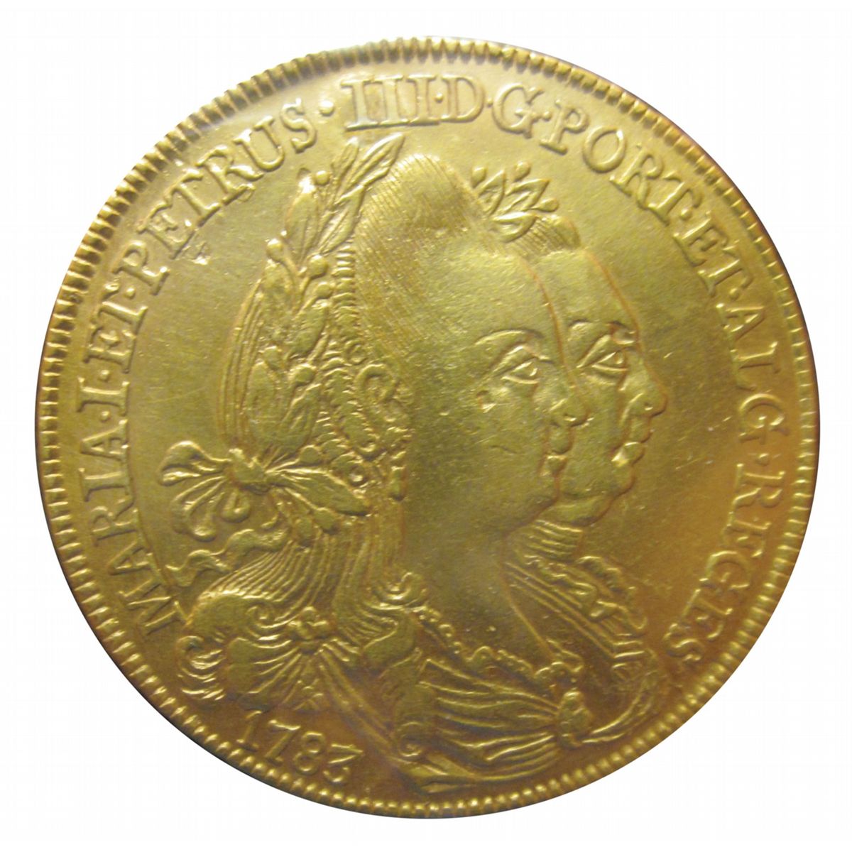 World Gold; Portugal 4 Escudos 1783 KM#281 ,917 ,4215 oz AGW 14,3 gr Very-Fine, appear to have had a hole repaired where the III is, cleaned.