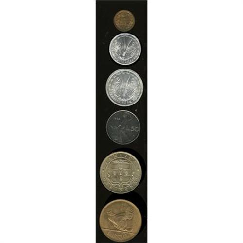 <B>Sextet of Mint State Minors,</B></I> Great Britain 1/3 Farthing 1866, Ireland Penny 1931, Italy 50 Lire 1956, Jamaica Penny 1918C and Togo 1 and 2 Francs 1948. All the coins are UNC, the Italy 50 Lire is a Gem and the two Togo coins have a bit of white oxidation on the reverse. <B>Sold as is, no return lot.</B></I><BR><BR><b>Shipping:</b> Coins & Currency (<a target="_blank" href="http://www.heritageauctions.com/common/shipping.php">view shipping information</a>)