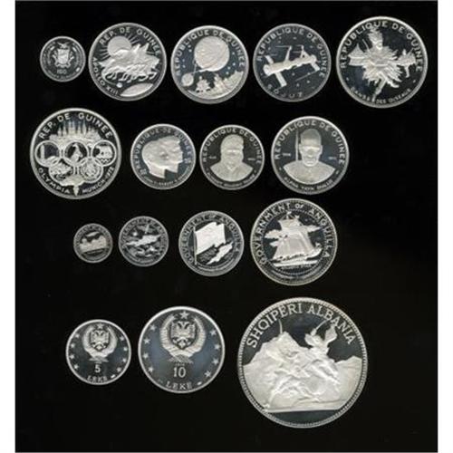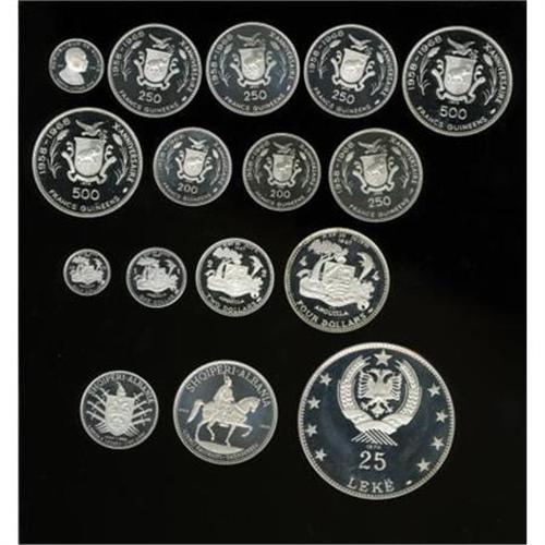 <B>Three 1970 Proof Sets,</B></I> Albania 3-piece Proof set 1970, KM-PS6; Anguilla 1970 4-piece Proof set, KM-PS5; and Republic of Guinea 9-piece Proof set 1969-1970. All are Choice with certificates, but without cases. <B>Sold as is, no return lot.</B></I><BR><BR><b>Shipping:</b> Coins & Currency (<a target="_blank" href="http://www.heritageauctions.com/common/shipping.php">view shipping information</a>)