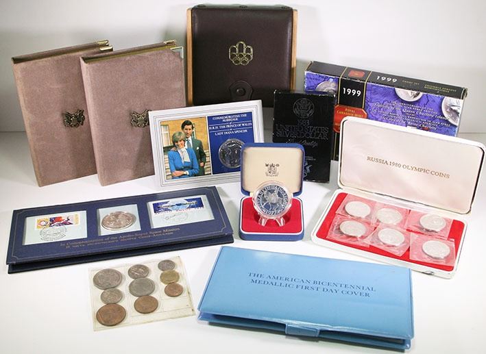 USA Proof Sets, 1983 & 1984; Proof Silver Dollar, 1983; Commemorative items as pictured; Canada, Silver Proof Sets, Montreal Olympics, 1973, 1999; Russia, Proof Set, Olympic Games, 1980; UK, Uncirculated Coin Set, 1953; commemorative pieces as pictured