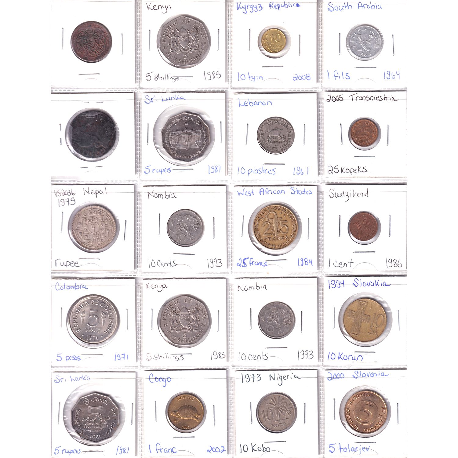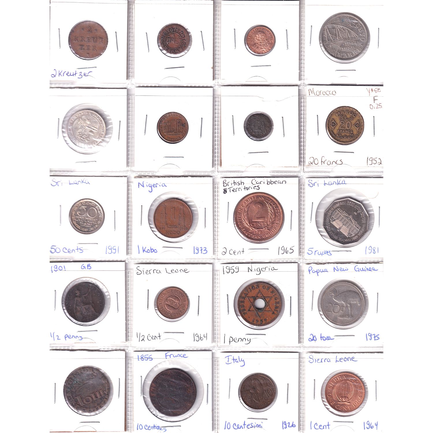 INCLUDES: France 1916 10 Centimes, Sierra Leone 1964 1-cent, Sri Lanka 1981 5 Rupees & Many More!! Sold as is; please view images for details. 60pcs.