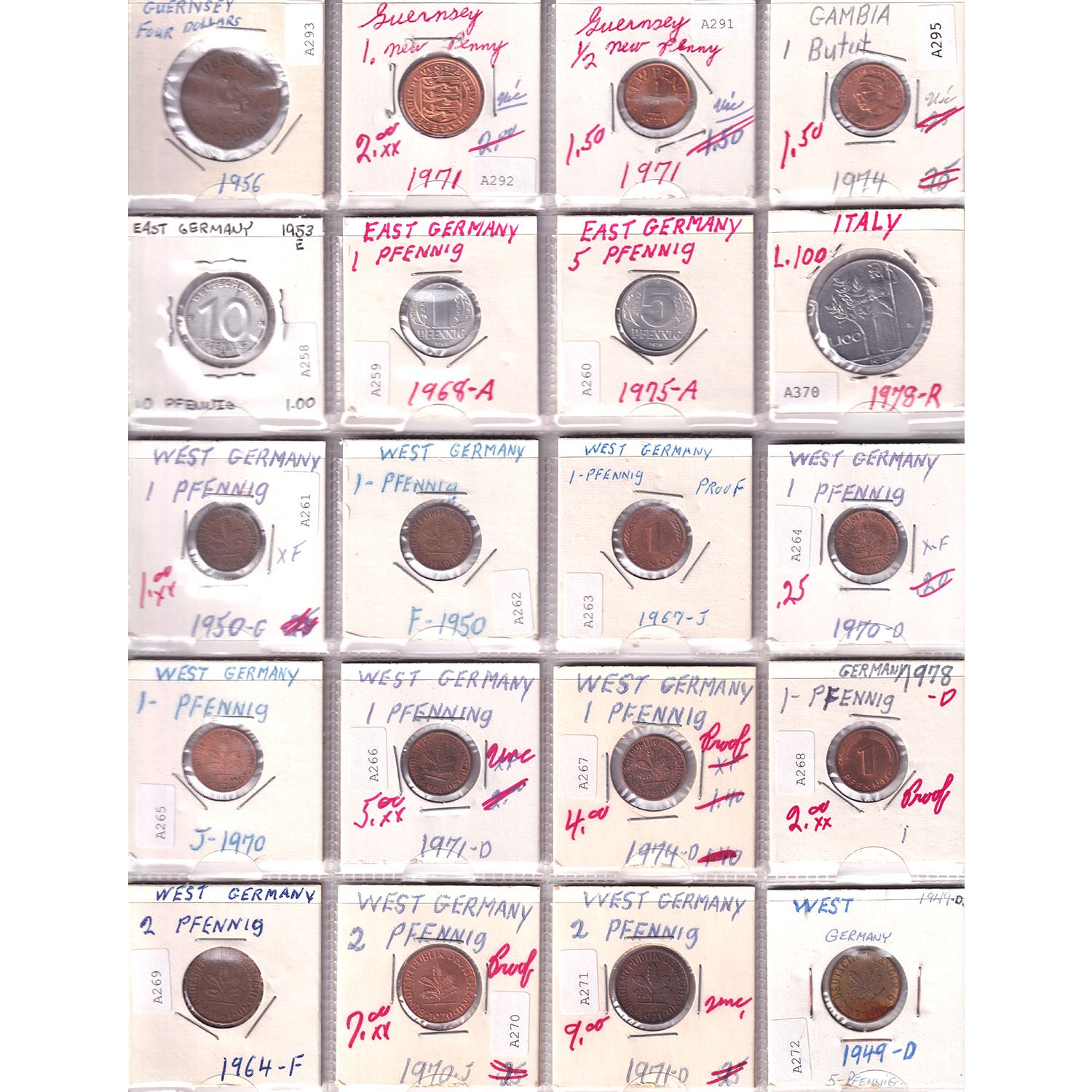 INCLUDES: Ireland 1963 1 Shilling, Hong Kong 1971 5-cent, West Germany 1972 5 Pfennig & Many More!! Sold as is; please view images for details. 80pcs.