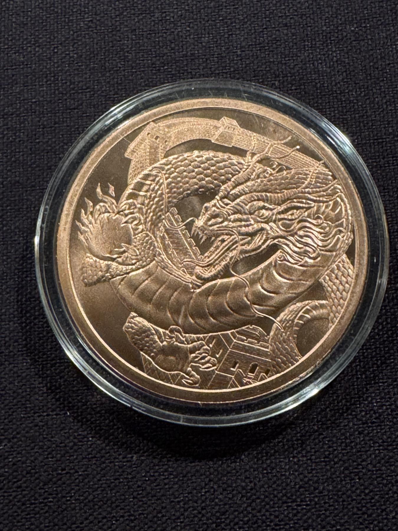 World Of Dragons - 1 oz .999 Fine Copper Round Coin in Holder - Mint Condition