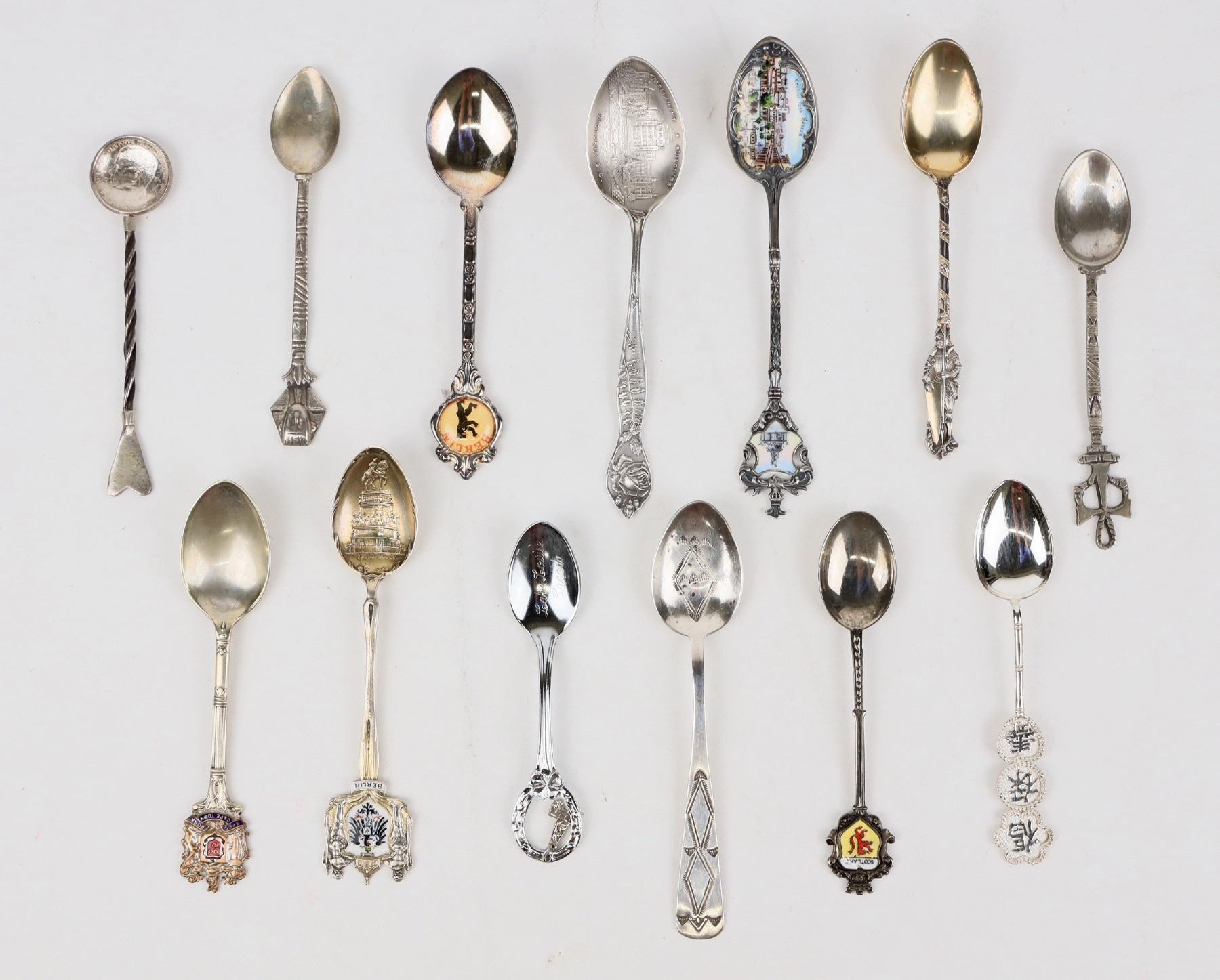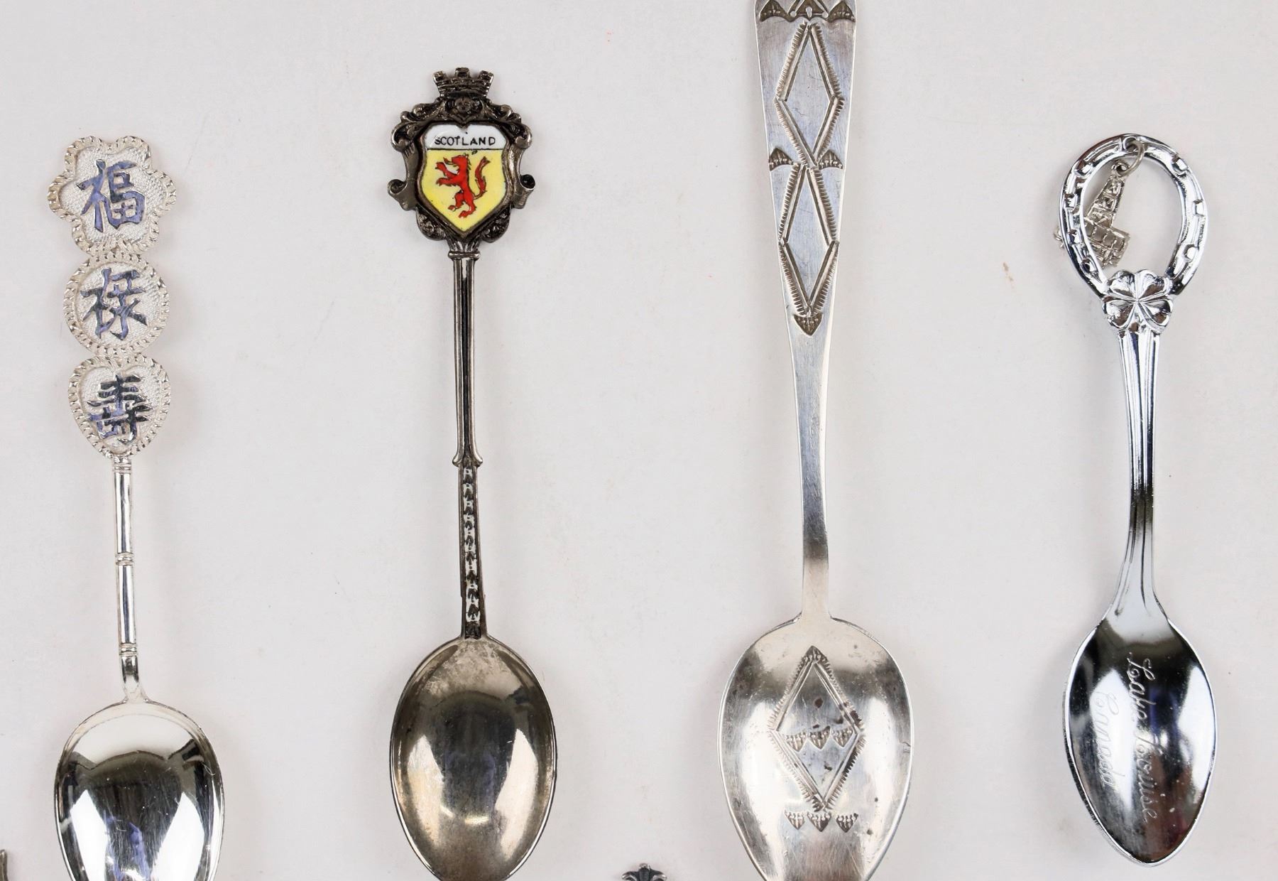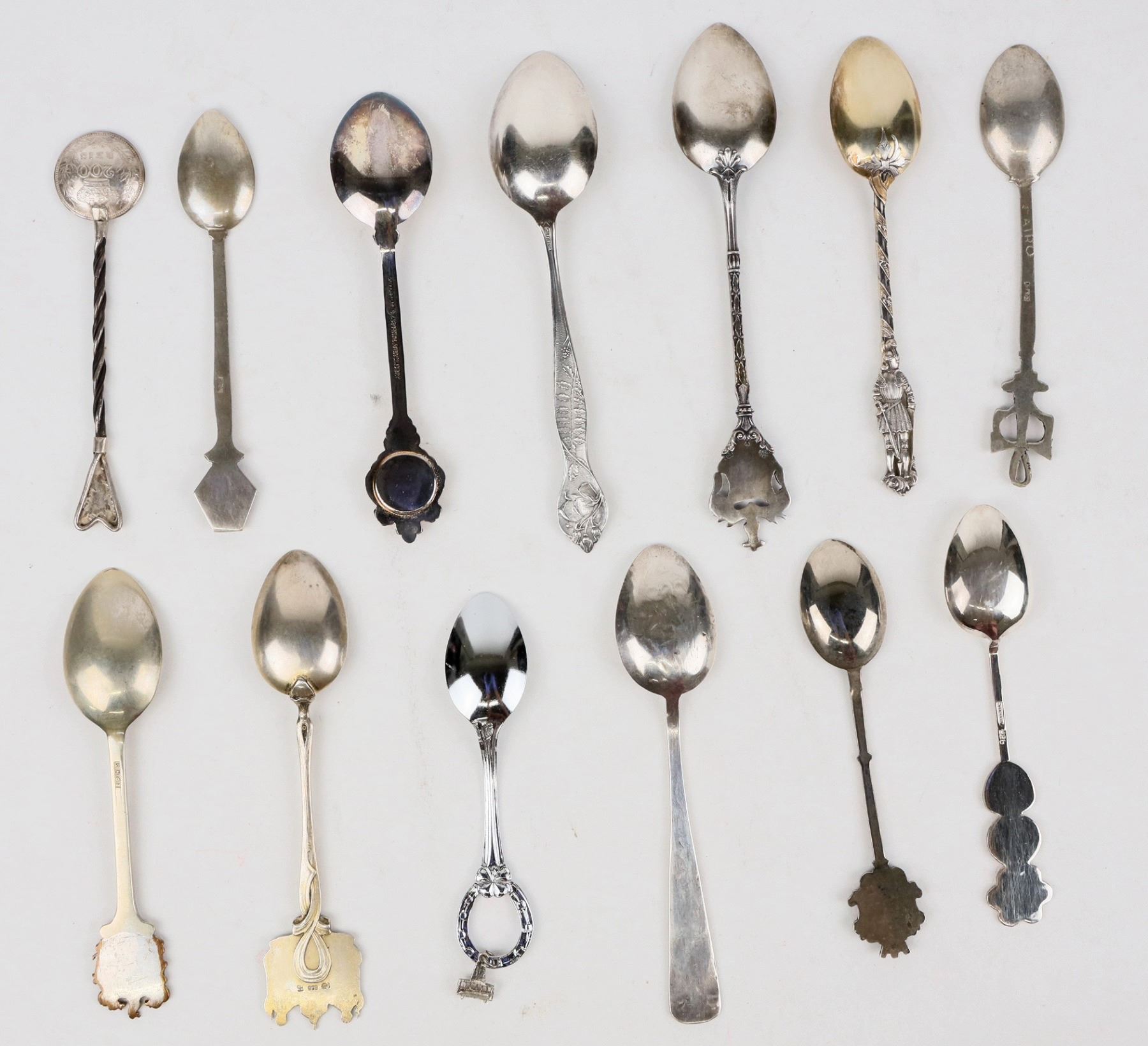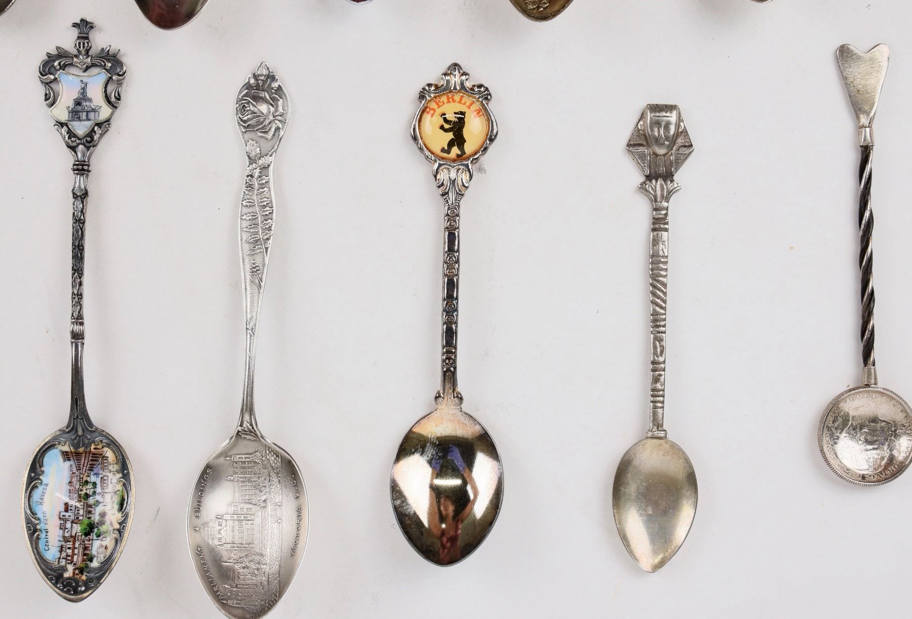 World Souvenir Spoon Collection. 69 Souvenir spoons from around the world, about a quarter of them are sterling silver, the rest are not.