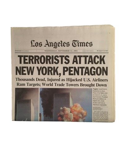 World Trade Center WTC LA Times September 12th, 2001 Famous Twin Towers Headlines
