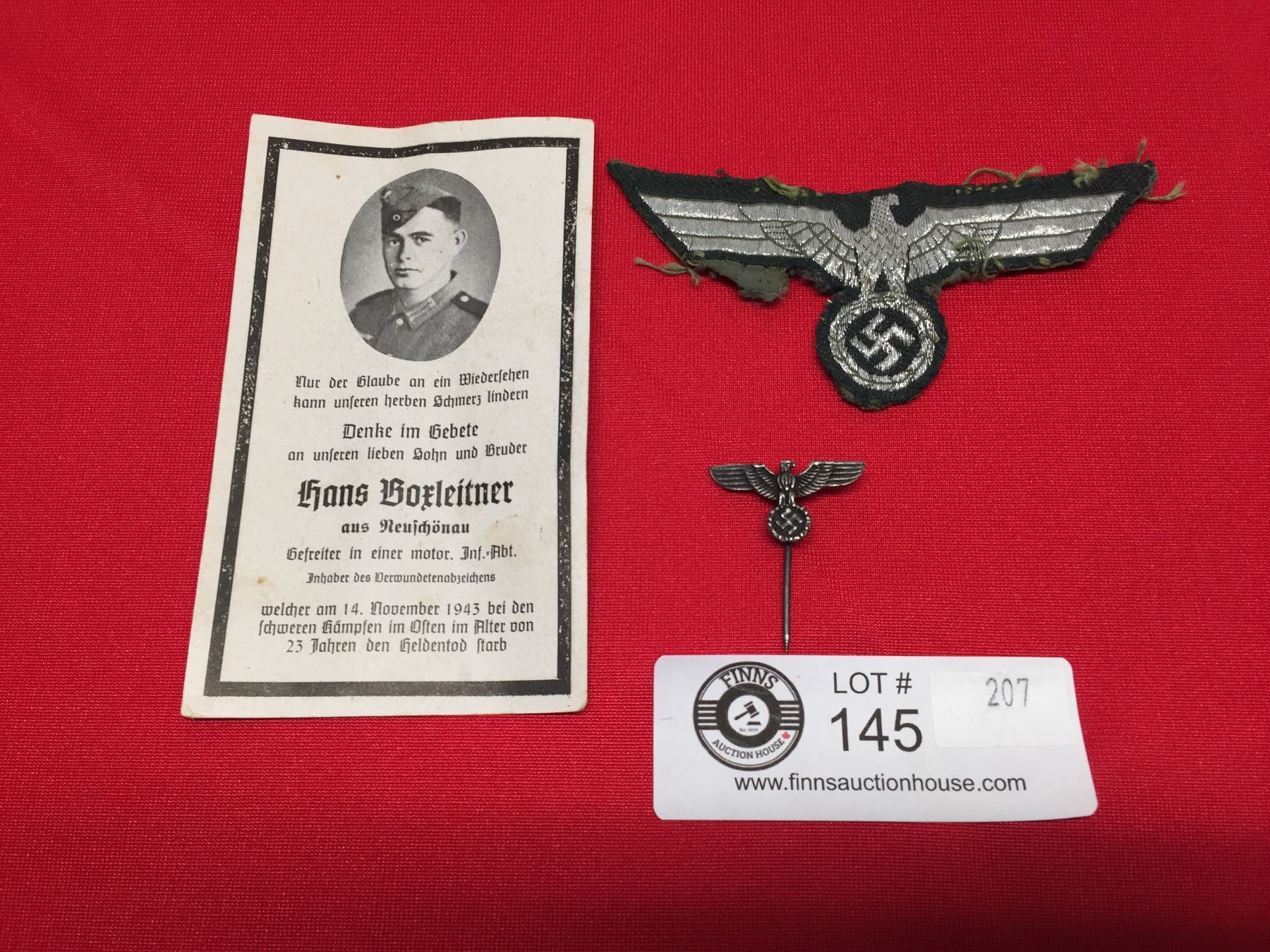 World War 2 Breast Eagle of Uniform Plus pin and Memorial Paper