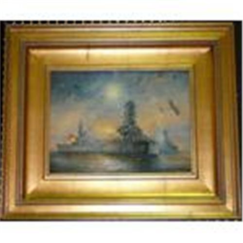 Magnificent detail and wonderful colors in a fascinating scene. Signed by J. Clark. <BR><BR>A beautifully detailed oil painting by a contemporary artist. Handsome handcrafted frame with wonderful details. Dimensions are of the painting. <BR><BR>12x16 Framed oil on board - $395. 24x30 Framed oil on canvas - $895.