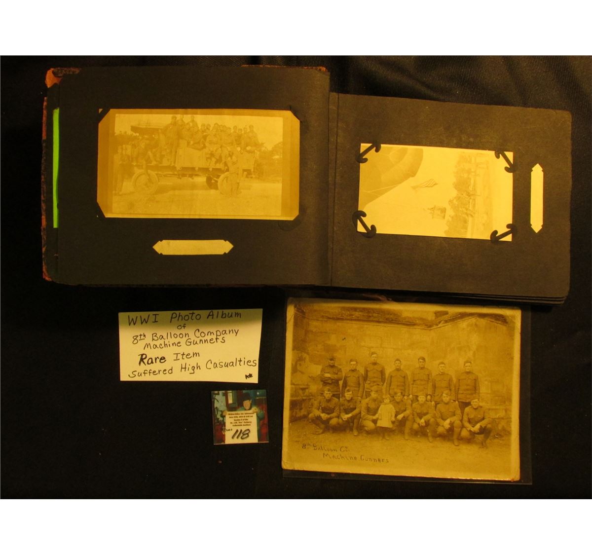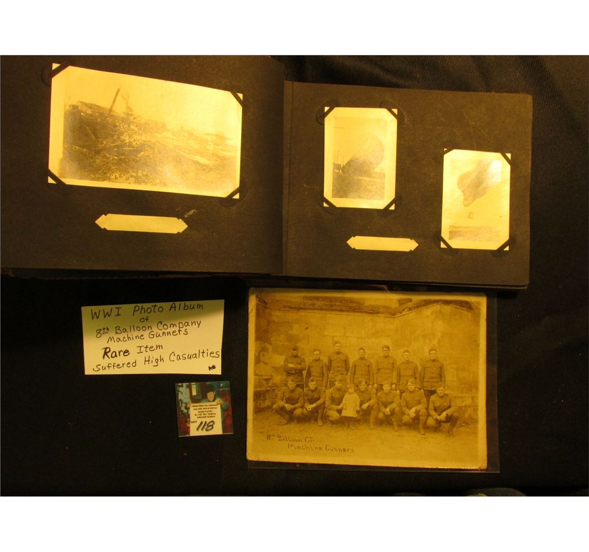 World War I Photo Album of "8th Balloon Co. Machine Gunners". They suffered high casualties. Rare item.