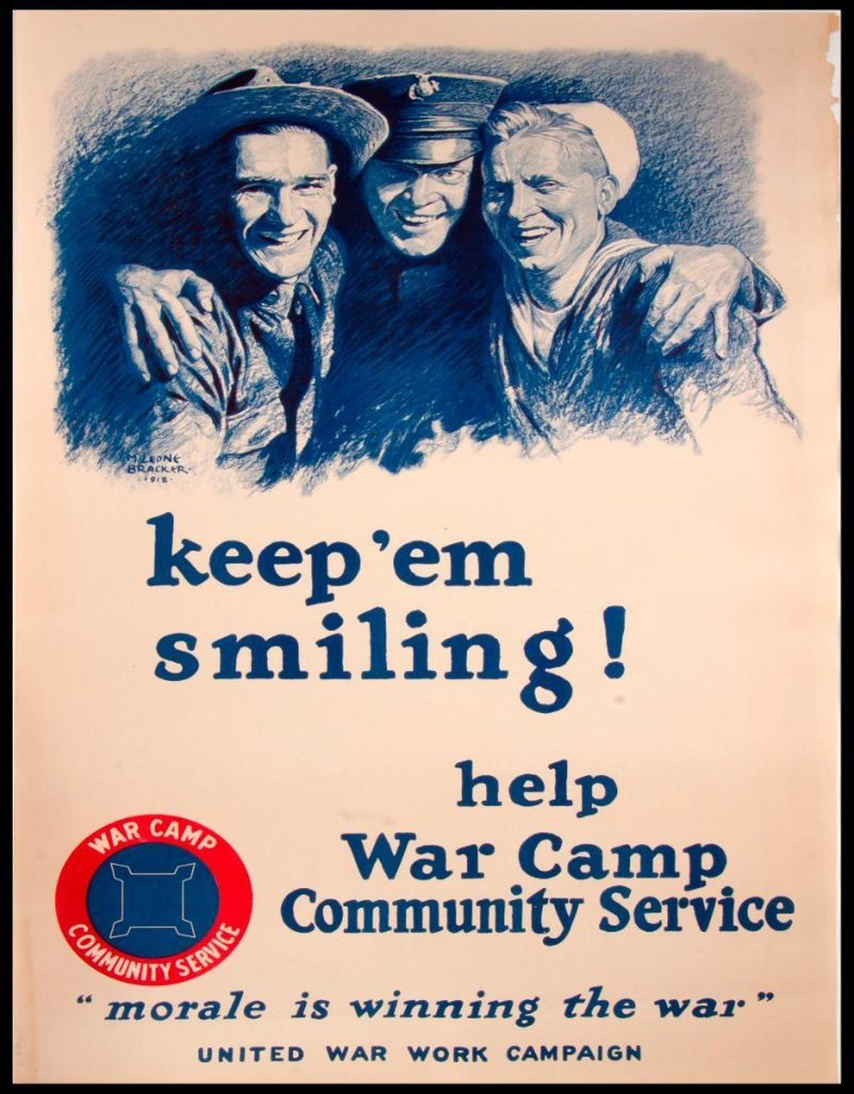 Vintage World War I Poster. Keep them Smiling, 1918. Paper size: 45 x 31 inches. Linen backed. Condition: as per photograph.