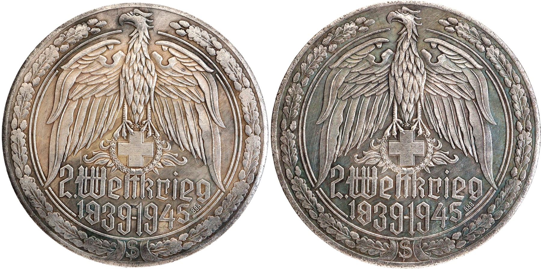 Medals, World War II (1939-45), Commemorative Issue, German Silver, Two Table Medals, Obv: German WW2-era tanks, warriors, Rev: a German Imperial Eagle with ‘Wenkssig (World War) 1939-1945’, 36.8g, 48.1g, 50.5mm each, about very fine.