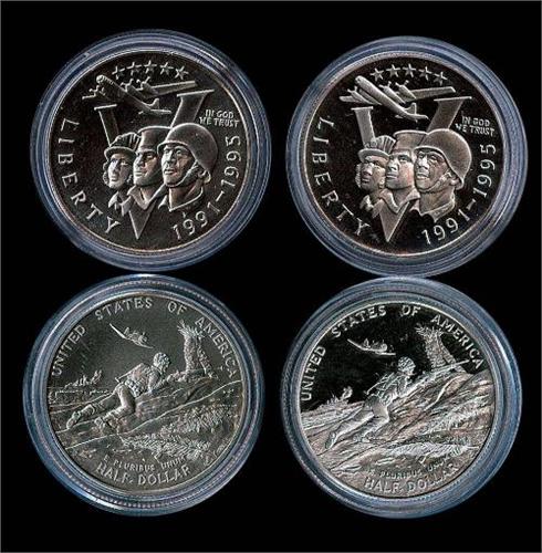 World War II Commemorative Half Dollars, One each BU and Proof; In original capsules!