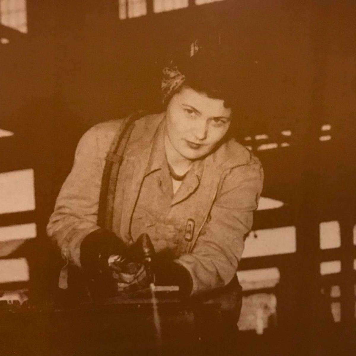 World War II woman, factory worker sepia-tone photo print. Created in the early 1990's, printed on cardstock. 8" X 10".Â