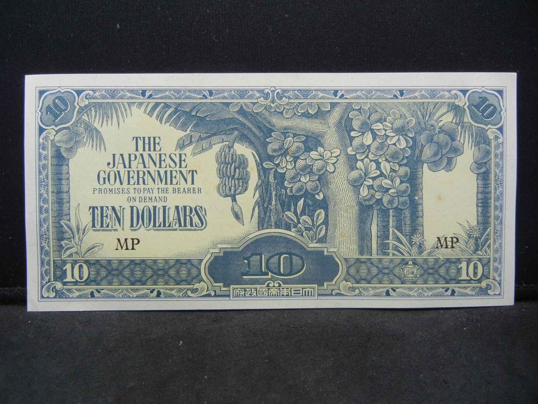 World War II Japanese 10 Dollars Malaya Occupation Note.
